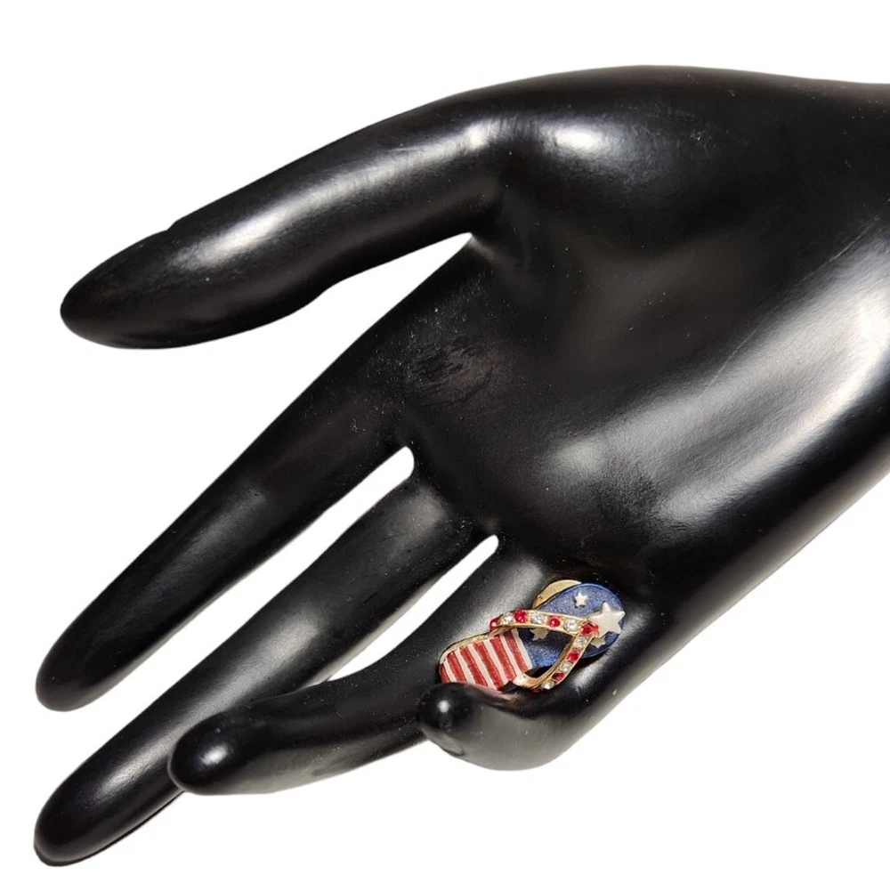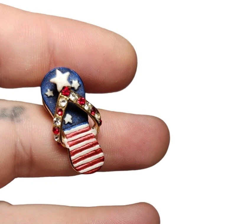 Patriotic FLIP FLOP Lapel Hat PIN Red White & Blue EUC Summer ACCESSORIES. Excellent condition, great shape! Bright colors, no missing stones