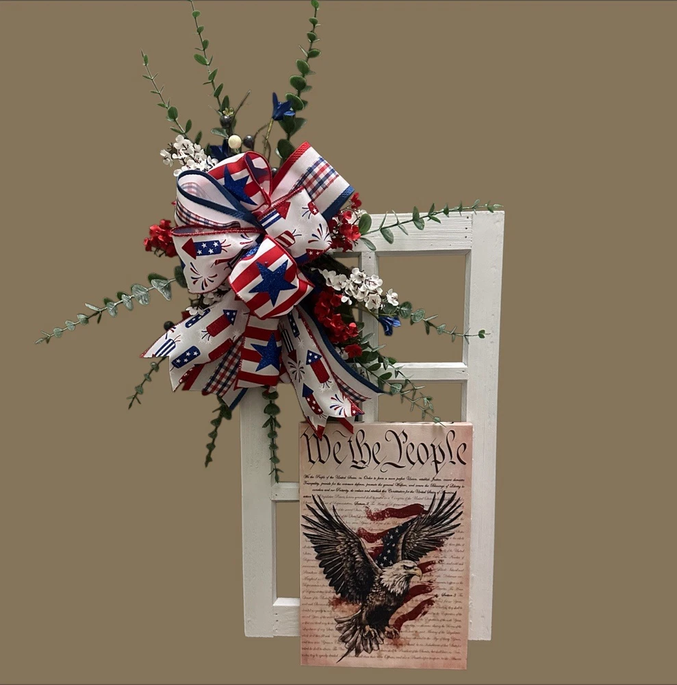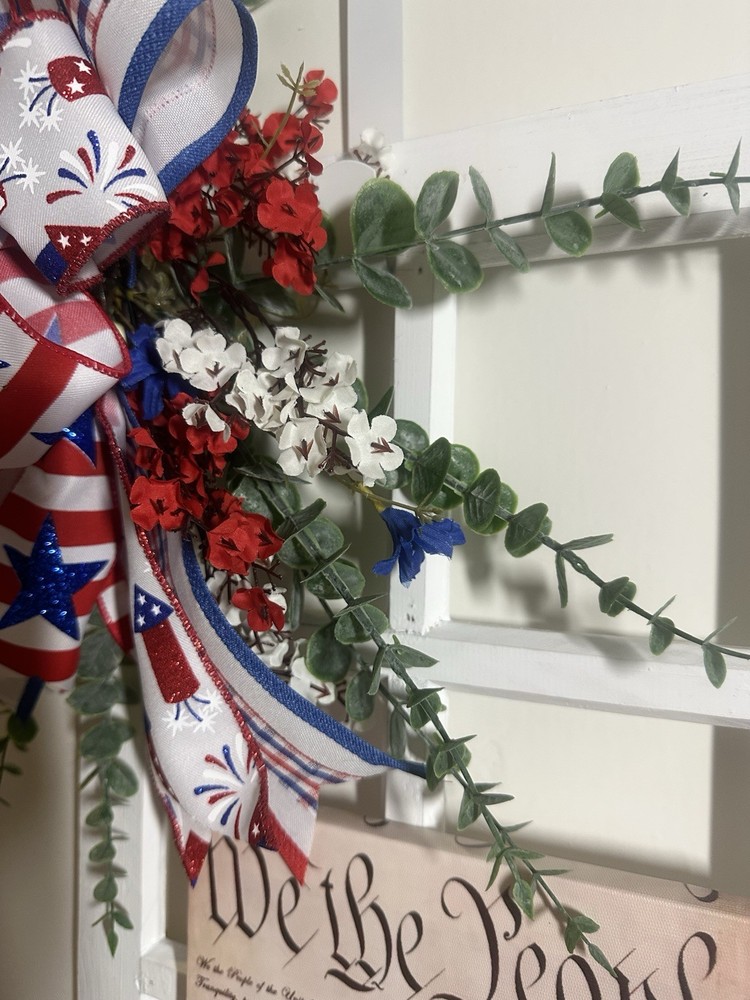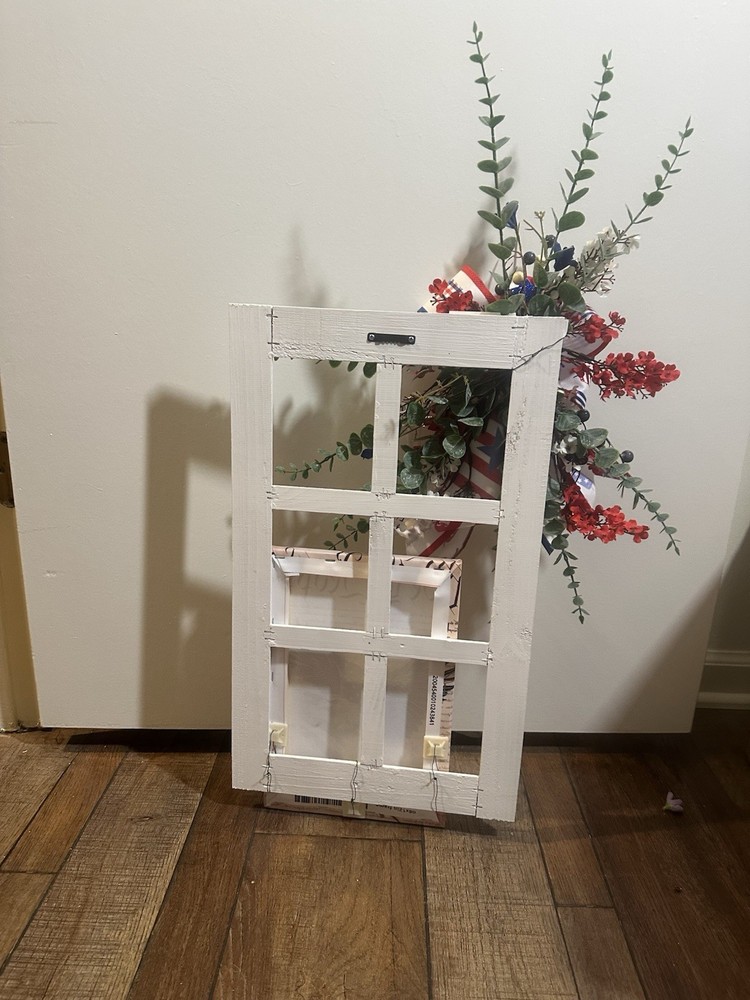 1. This patriotic window pane decor is absolutely stunning! The bright colors and floral accents pop beautifully, and the ribbons add a lovely touch. Perfect for adding a festive, handmade feel to any room. Great quality, shipped fast—very happy with my purchase!