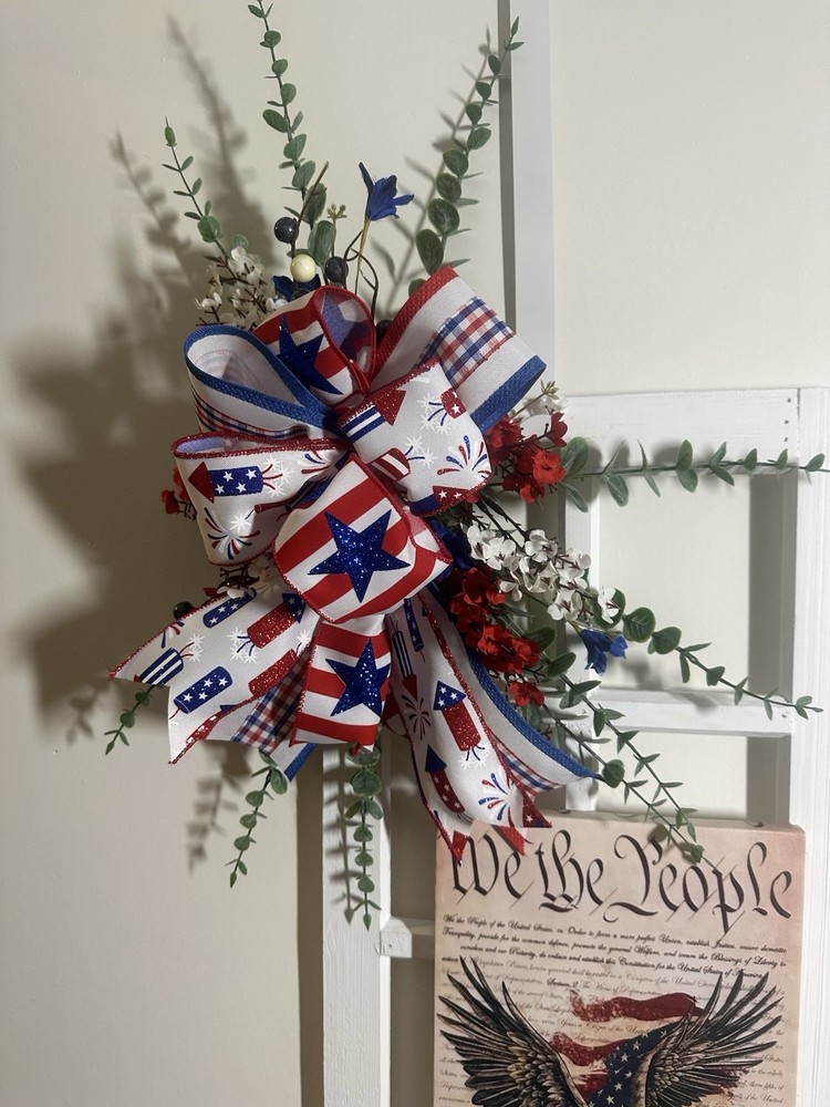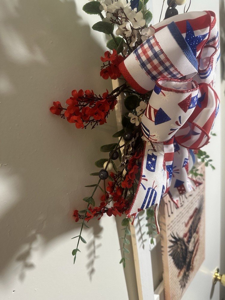 Patriotic Floral Ribbon Window Hanging in Vibrant Colors