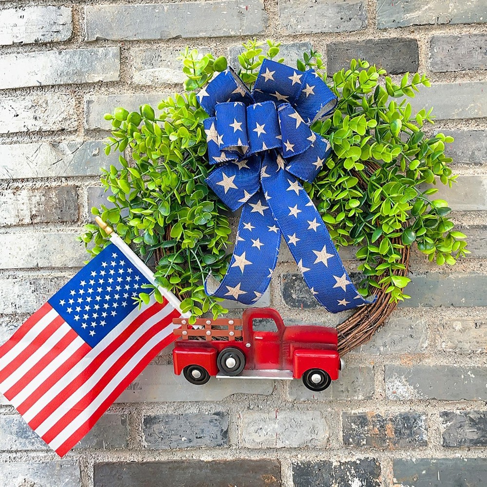 This festive wreath is absolutely stunning! The vibrant red, white, and blue colors pop, and the added flag, truck sign, and bow give it such a patriotic flair. It’s well-made with durable polyester and plastic, so it’ll last for many Fourth of July celebrations. Perfect for sprucing up your front door, fireplace, or office—definitely a must-have for the holiday!