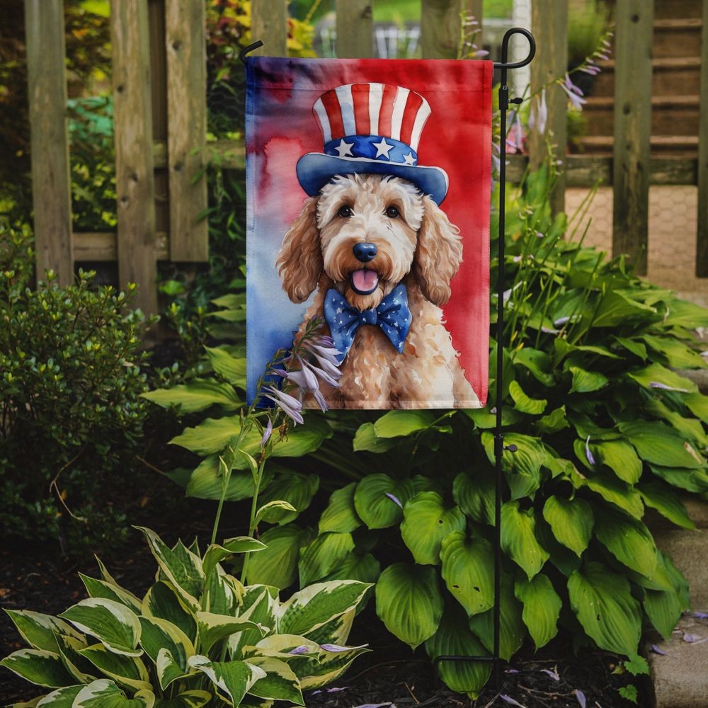 Highlights Vibrant Outdoor Decor: Elevate your garden, patio, or yard with Caroline's Treasures Garden Flag, featuring stunning artwork that adds a pop of color and personality to your outdoor space. Premium Quality and Durability: Made from two pieces of thick, double-sided polyester fabric, this 2-ply garden flag is water-resistant, weatherproof, and designed to withstand wind, rain, and snow, ensuring long-lasting beauty. Readable on Both Sides: With correctly readable words on both sides, this garden flag offers a delightful visual experience from any angle, making it a captivating focal point in your outdoor decor. Made in the USA: Proudly crafted in the USA, Caroline's Treasures Garden Flag is a symbol of exceptional quality and craftsmanship. Enhance your outdoor setting with this high-quality flag and enjoy its vibrant charm for years to come. Great gifts: Great hostess gifts, a housewarmning gift for that new home or a wedding gift for that new couple. All of our products feature artwork from one of our artists or desingers. A great gift for your dog walker, groomer, or pet sitter. Goldendoodle gifts,Goldendoodle collectibles Specification Brand:Caroline's Treasures Details Garden Flag featuring breed specific Goldendoodle artwork. Enhance the beauty of your garden, patio, or yard with Caroline's Treasures Decorative Garden Flag, proudly made in the USA. Crafted from two pieces of thick, double-sided polyester fabric, this 2-ply garden flag is designed to withstand various weather conditions, making it water-resistant and weatherproof. Featuring correctly readable words on both sides, this garden flag offers a delightful visual experience from any angle. With its heavier weight, it stands out among other garden flags, ensuring stability and durability even in wind, rain, and snow. Measuring approximately 11 1/4 inches by 15 1/2 inches, this flag allows you to personalize your outdoor decor. It comes with a 1 1/2-inch sleeve sewn in, allowing easy attachment to any standard garden flag stand or garden size porch hanger (sold separately). Make a statement in your outdoor space with Caroline's Treasures Decorative Garden Flag, a vibrant and high-quality flag that adds color and personality to your surroundings. Proudly made in the USA, it's a symbol of quality craftsmanship and attention to detail.