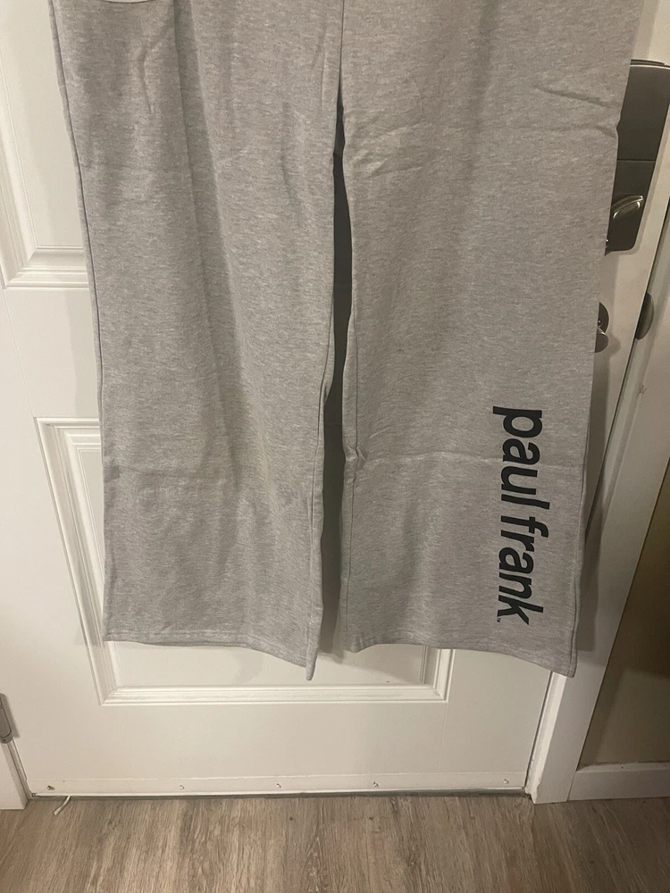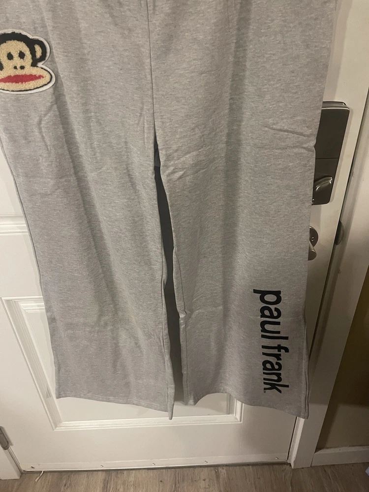 Paul Frank Women’s Size 2X Monkey Logo Patch Gray Sweatpants Wide Leg Y2k NWT’s