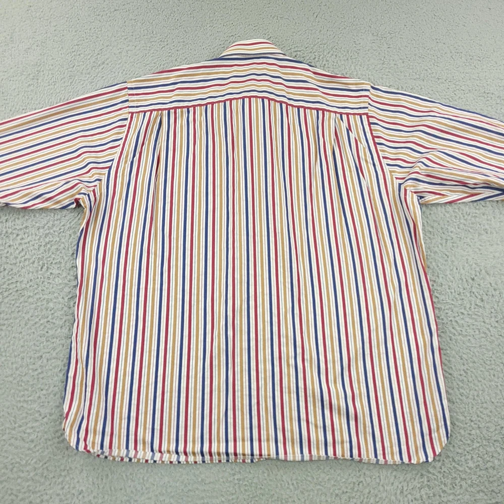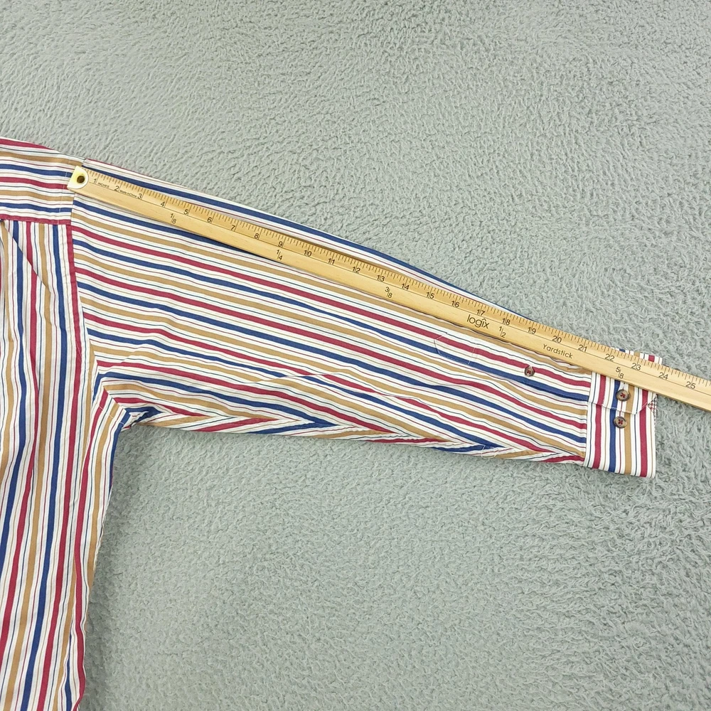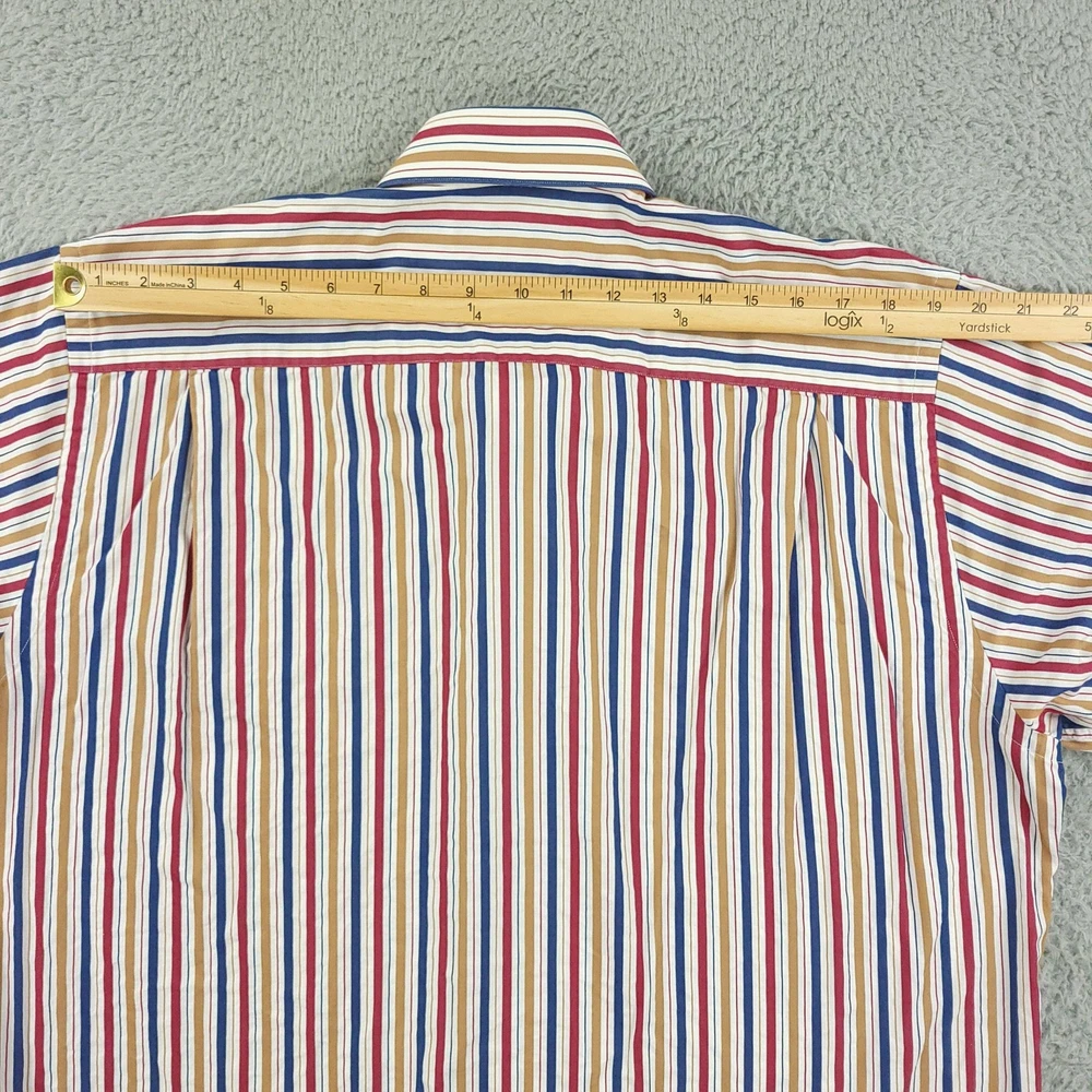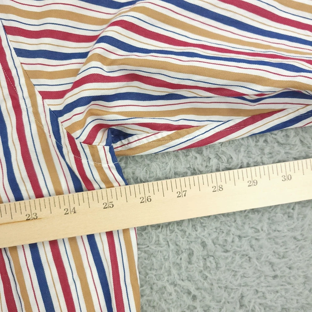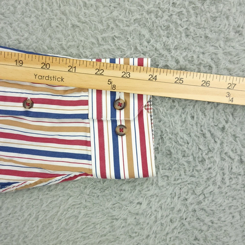 John Ashford Dress Shirt Mens Size M Red Yellow Blue White Stripes IN STOCK
