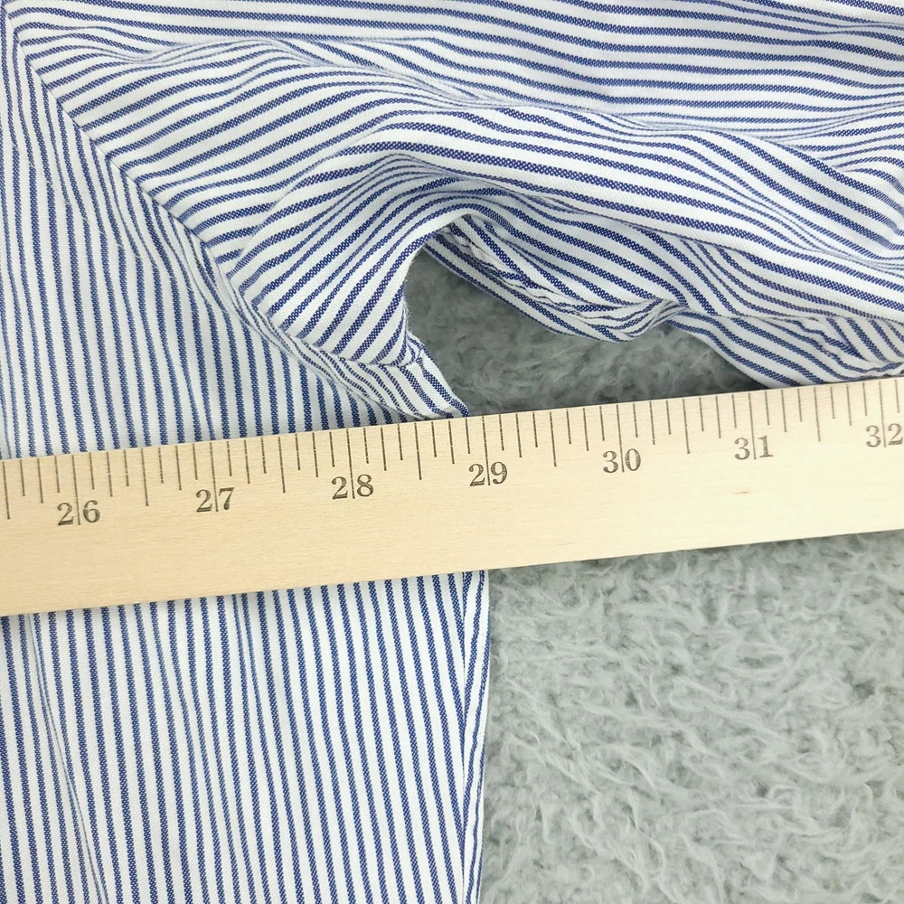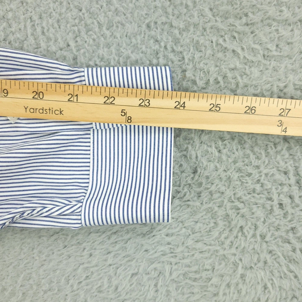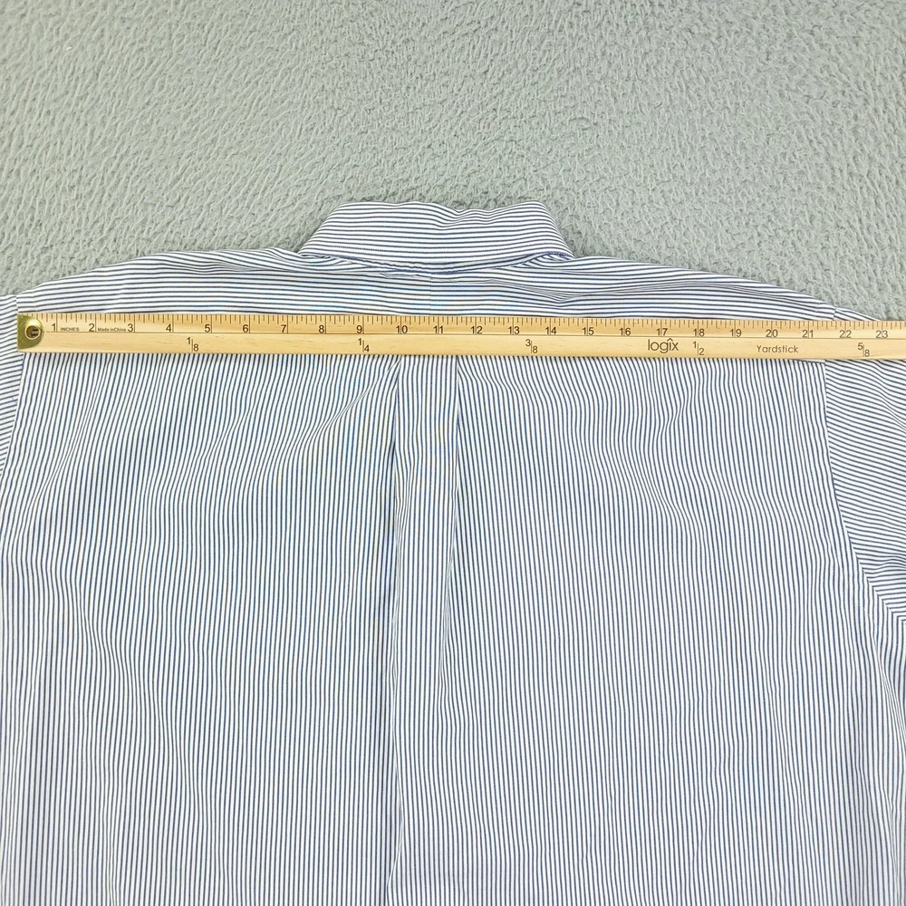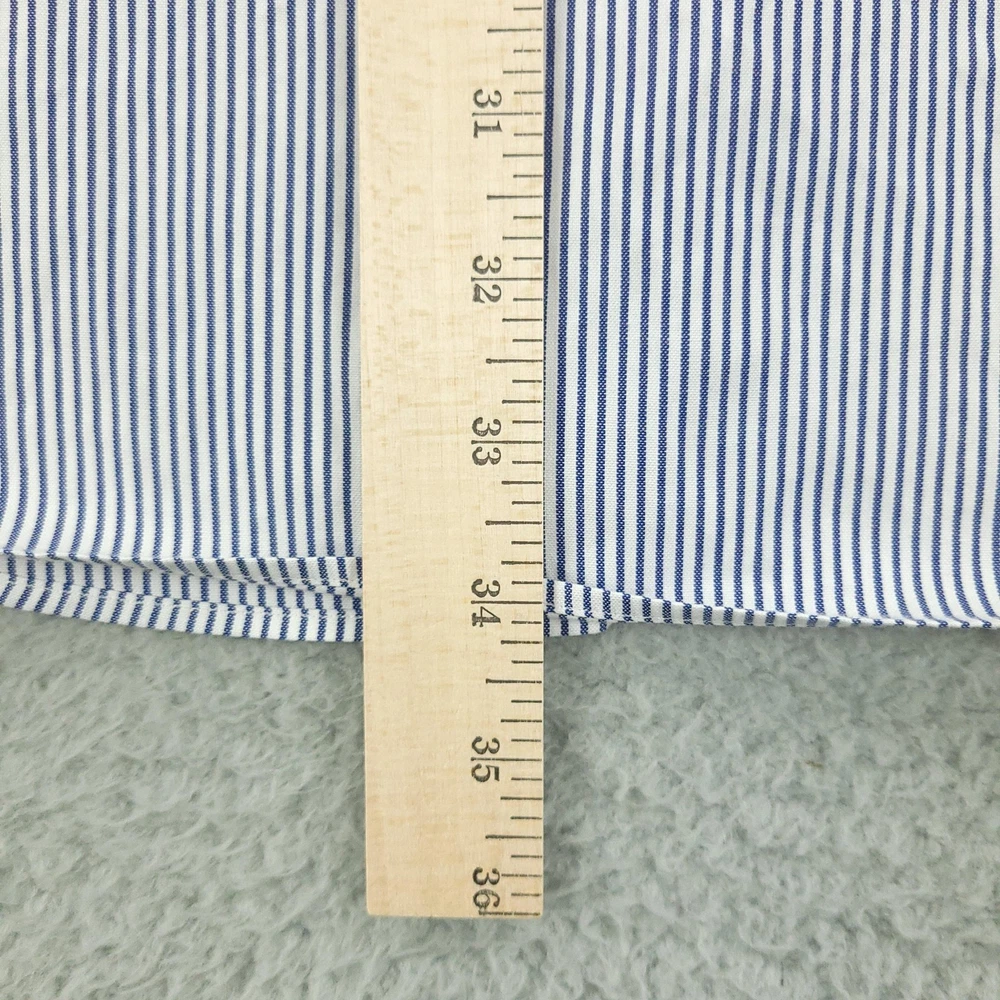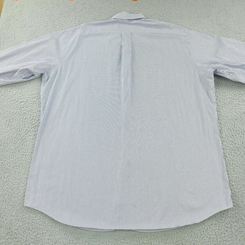 Brand: Paul Fredrick Style: Mens long sleeve button down dress shirt with blue and white vertical stripe pattern. Color: Blue and white stripes Material: 100% cotton; Finest two ply cotton pinpoint per tag. Made in China. Size on tag: 18 1/2 - 35 Details: Button-down collar, full front button closure, single chest pocket, rounded shirttail hem, barrel cuffs with button closure, back yoke with center box pleat, classic business dress styling. Washed and dried with Fragrance Free Detergent & Dryer Sheets. Measurements are included in the photos, compare measurements with your item to ensure proper fit. (Measurements are done with the item lying flat). I ship next business day and all items include tracking. Items are added daily to my store Visit My Store Buy More & Save! Combined shipping for US customers - $1.99 for each additional item (Add items to shopping cart and discounts will automatically calculate during checkout)