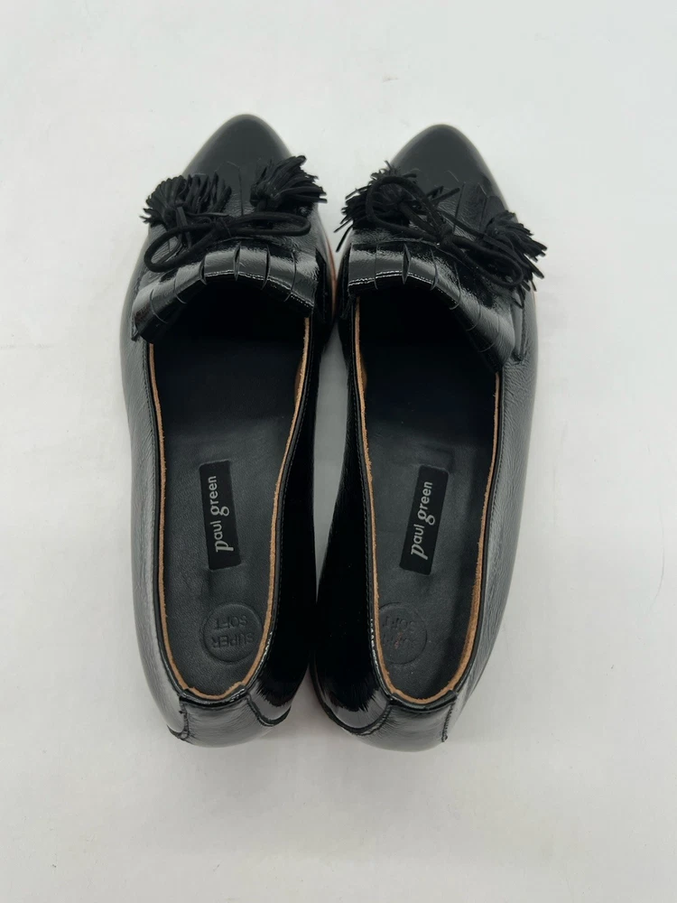 Paul Green Women’s 5.5 Sz US 8 Black Patent Leather Pointed Toe Tassel Loafers. Shoes are in used condition and have signs of wear but shoes are still in great condition. Upper leather is in excellent condition and very clean , inside is clean and the soles are in great condition. Nice comfortable shoes for casual wear. Condition is pre-owned. Shipped with ups or usps priority mail. Sold as pictures. Thank you! Feel free to message me for any questions. Thank you