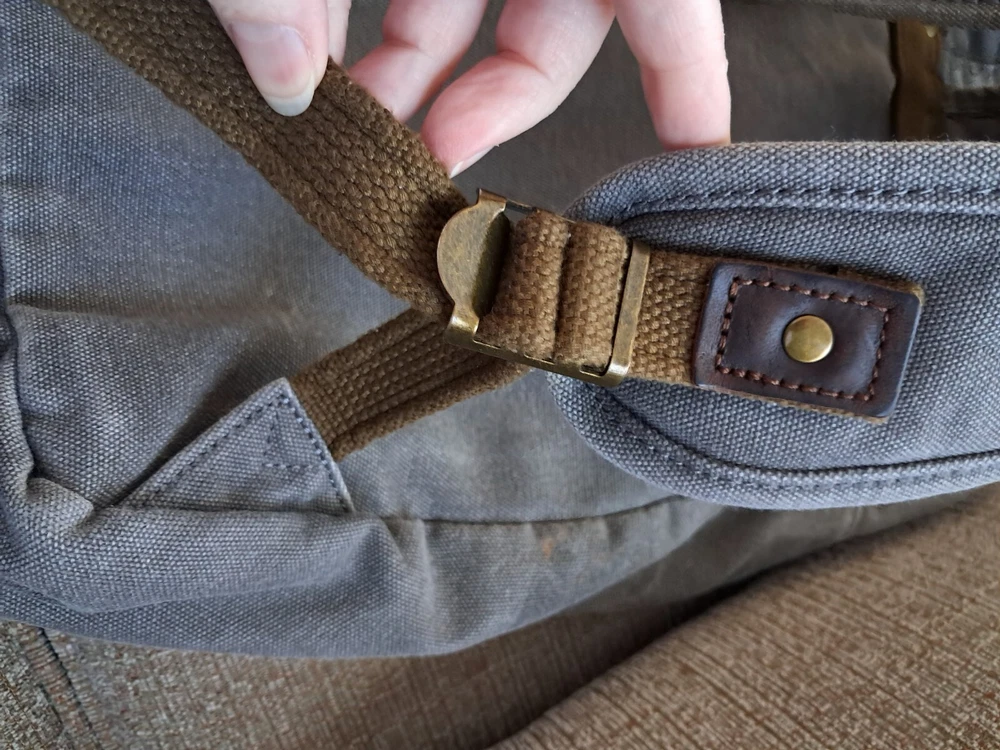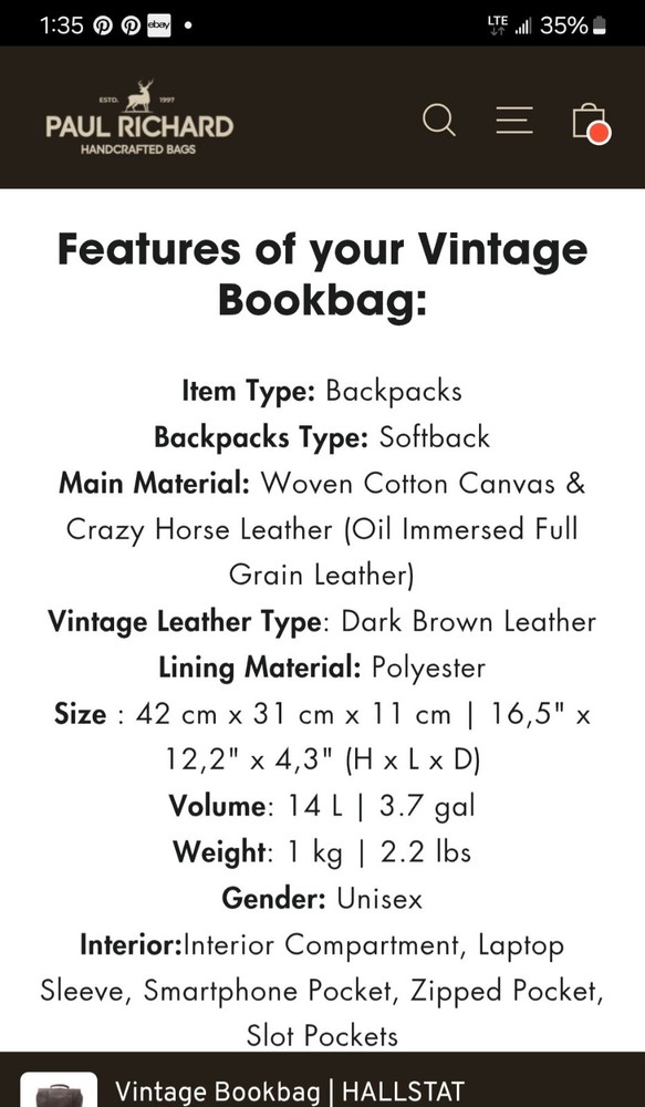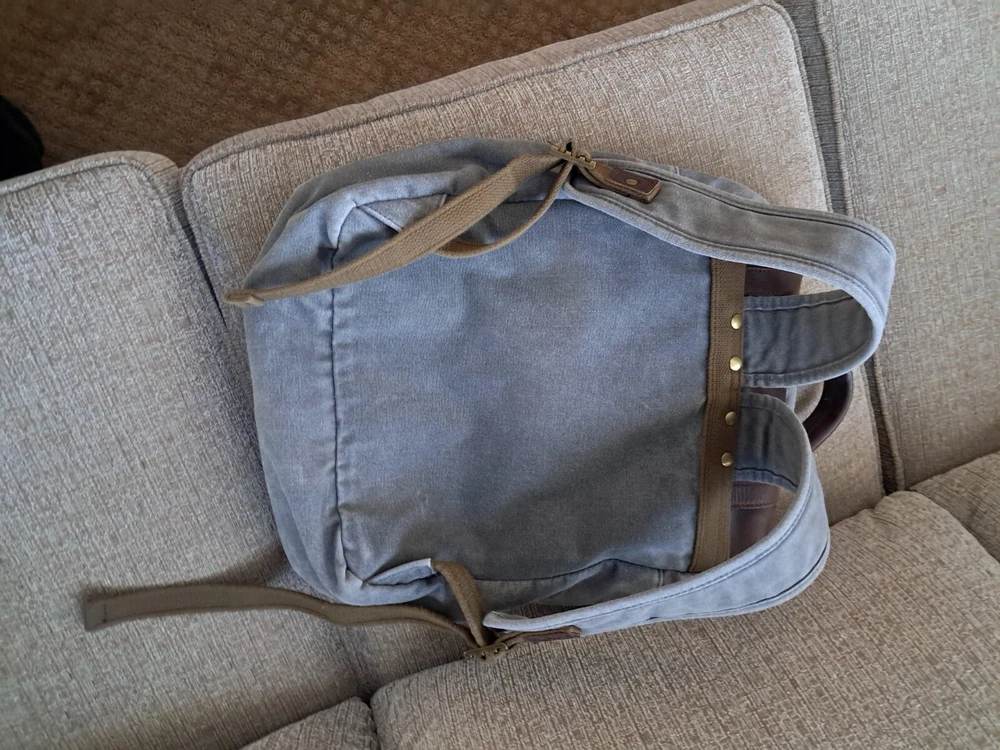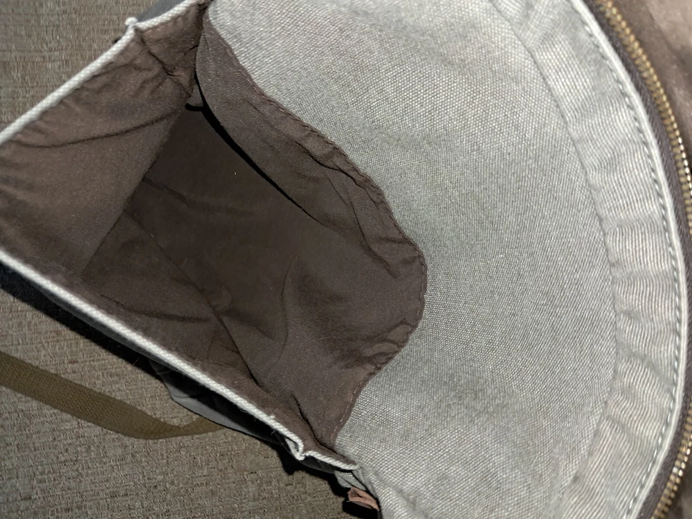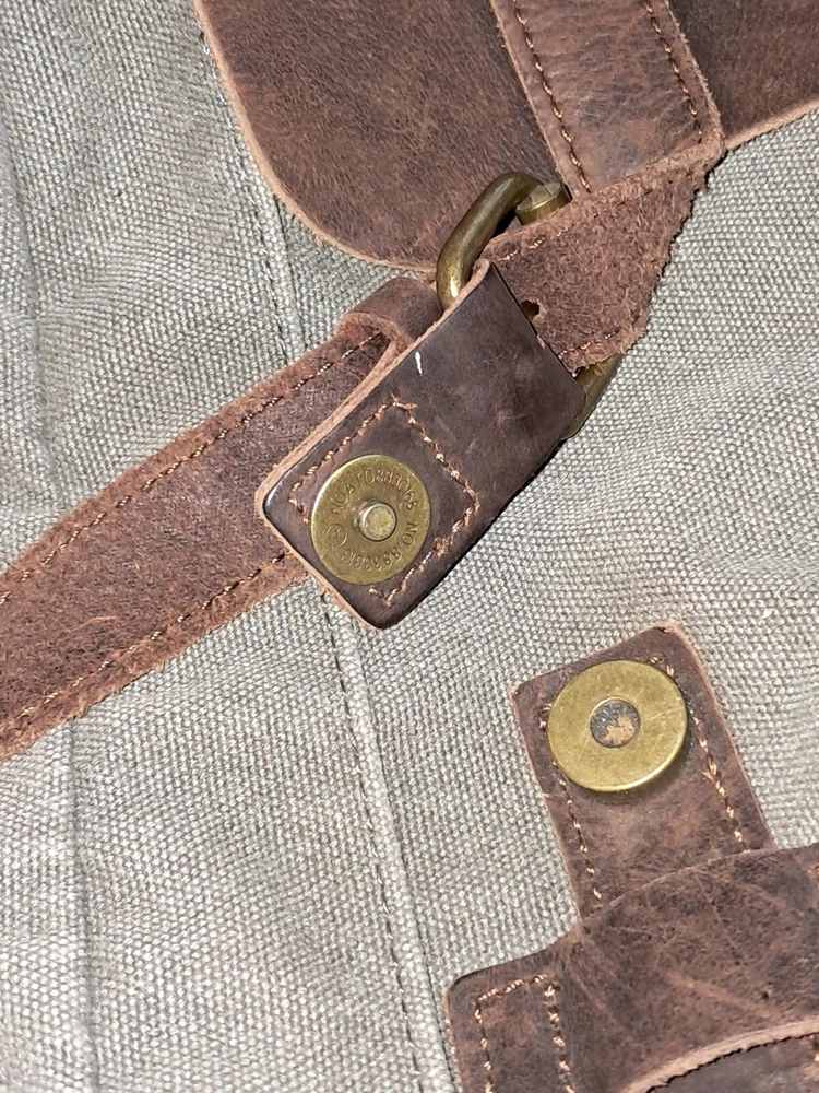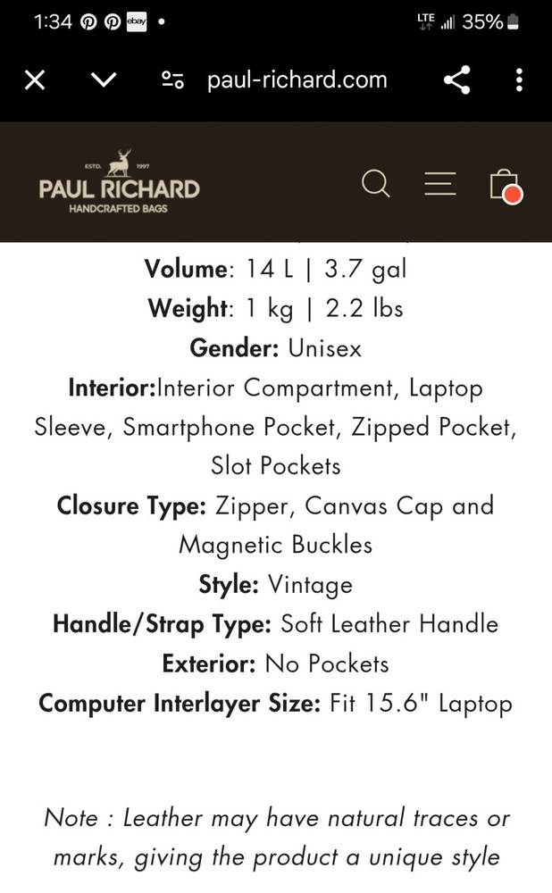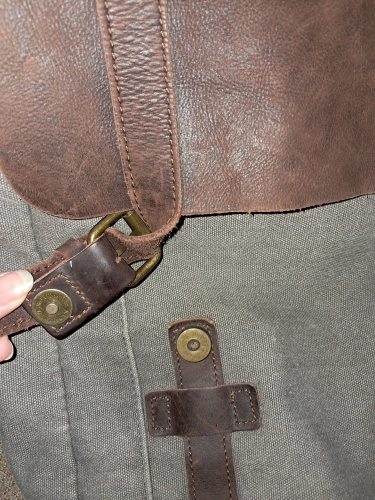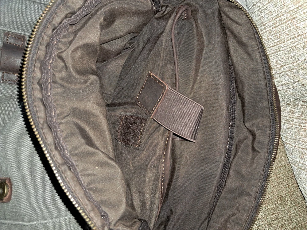 Paul Richard Bookbag Backpack Canvas Leather Brass W Padded Laptop Sleeve See specifics from the Paul Richard website on picture 3 and 4. Heavy canvas great leather detals. Reinforced top. The only markings are on the front snaps . NOATD8830168. NO 8833313 A