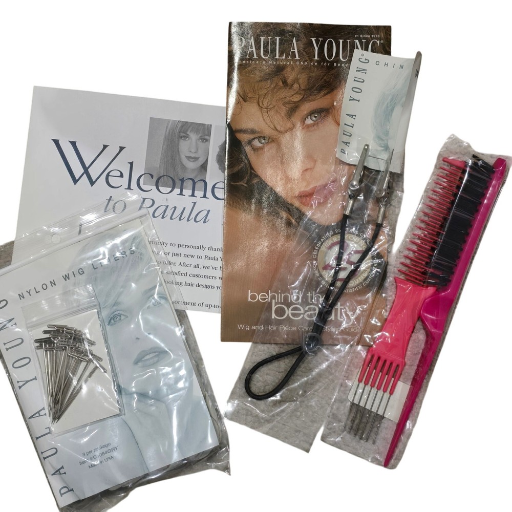 Paula Young Gray Short Hair Wig And Starter Kit Petite passion 56 Includes nylon wig cap Mannequin head and suction cup stand T pins Chin strap Combs Original paperwork Vintage NWT