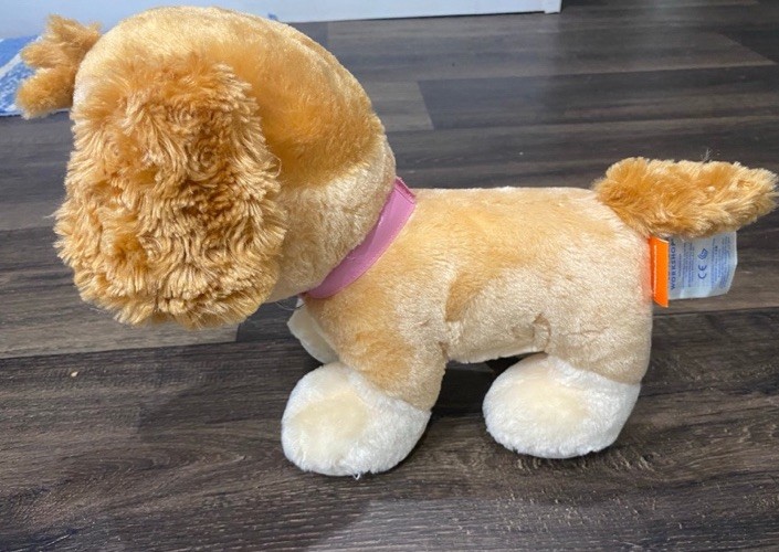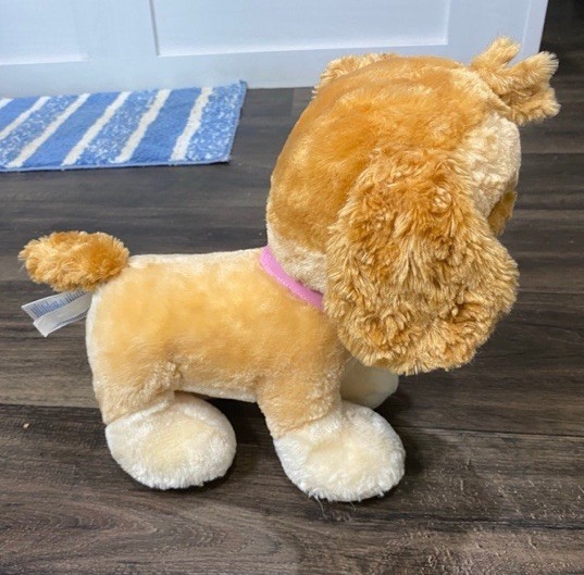 The Build-A-Bear Paw Patrol Skye Stuffed Animal Dog is a 12-inch plush toy featuring the beloved character Skye from the popular Nickelodeon show. This retired item was manufactured in 2016 and is part of the Build-A-Bear Workshop collection. Made of polyester and plush material, this pink-eyed stuffed animal is perfect for children aged 3-4 years old and can be a great addition to any Paw Patrol fan's collection. With its original design and high-quality construction, this Skye plush toy is sure to bring joy to any child's playtime.