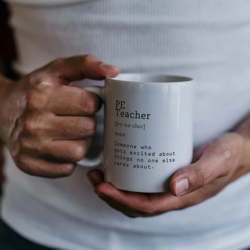 Pe Teacher Definition Funny Mug ~ Great Gift For Pe Teacher From Friends Mug Product Details.. This high quality 11oz. ceramic white mug has a premium hard coat that provides crisp and vibrant color reproduction sure to last for years. Perfect for all hot & cold beverages. The highest quality printing possible is used. It will never fade no matter how many times you wash it. Material: 100% Ceramic. Print both sides. Dishwasher and Microwave Safe. High Gloss + Premium White Finish. Printed in the U.S.A. Personalized & Custom. We support personalized and custom mug to add custom, when placing an order, you can add notes to the "order note" in shipping address section. Also you can contact us directly via message. Shipping Info. Ready to ship in 1 to 2 business days, All products are made-to-order and proudly printed in the United States. Shipped by USPS and DHL, You will receive your order in 5-7 days. Replace & Refund. All products are defective during shipping broken, chipped will be replaced free of charge. You are not satisfied with the product, we will refund 100% money to you. If any other issues arise, please do not hesitate to message, we would be more than happy to assist you.