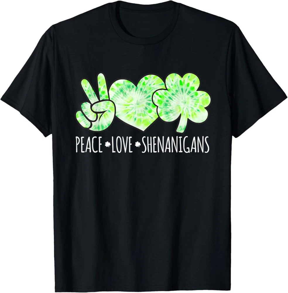 Peace Love Shenanigans Funny St Pattys Day Green Tie Dye T Shirt