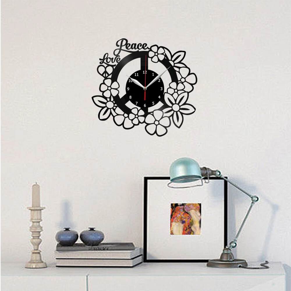 Peace and Love Vinyl Clock Record Wall Clock Condition: New Size: 12" (30cm) Material: vinyl record, built-in hanger, new movement quartz clock mechanism. Our clock mechanisms work quiet. * Requires 1 AA battery (not included) We pack our wall clocks in a separate protected box. This can be a unique gift for a birthday, anniversary, wedding, Mother's Day, Father's day and so forth. It is a beautiful decoration for hall, living room, office, playroom, kitchen, bedroom, children's room, nursery. Custom order Would you like to create something absolutely original? Nothing could be easier! Feel free to order your own unique design! Shipping We will need around 2-3 working days to make the vinyl clock and send it to you. All buyers will be provided with tracking numbers for their purchases. Shipping only by AIR Mail services. Contact Us Feel free to contact with us if you have any questions. We seek to answer for all messages as soon as it possible but, please note for the time difference about 7-10 hours, that's why some answers may be received only next day.