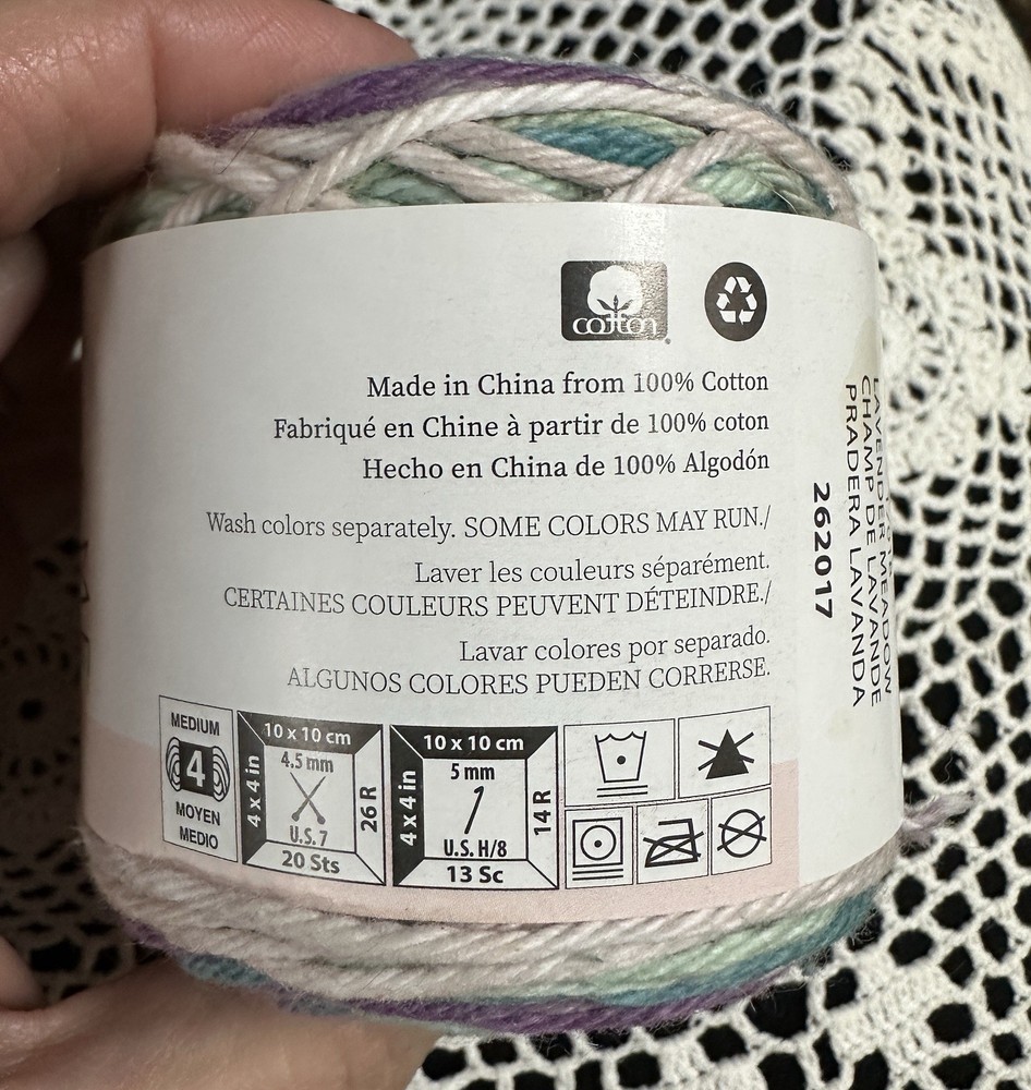 Lavender Meadow 100% cotton yarn 2 oz. 102 yds Will combine yarn orders.