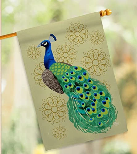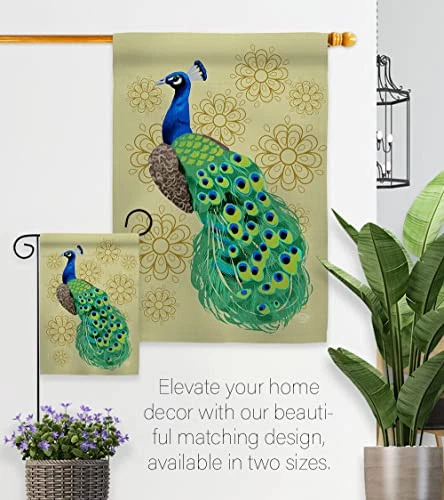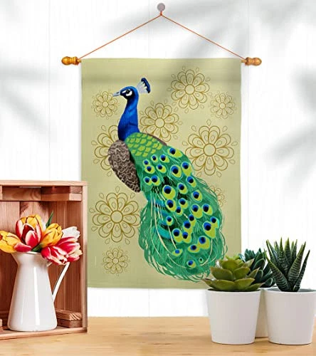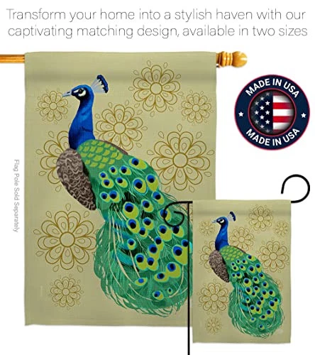 Peacock House Flag Dowel Set Garden Friends Birds Flamingo Hummingbird Cardin...