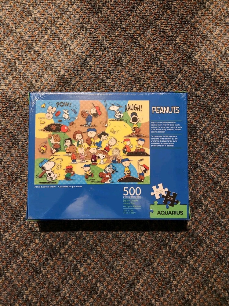 The Peanuts Baseball 500 Piece Jigsaw Puzzle by AQUARIUS is a fun challenge for adults, children, and teens. Made of mixed materials, this puzzle features a contemporary design and is recommended for ages 12-18. Released in 2020, it offers entertainment and skill-building for puzzle enthusiasts of all ages.