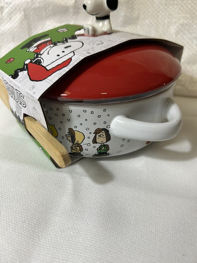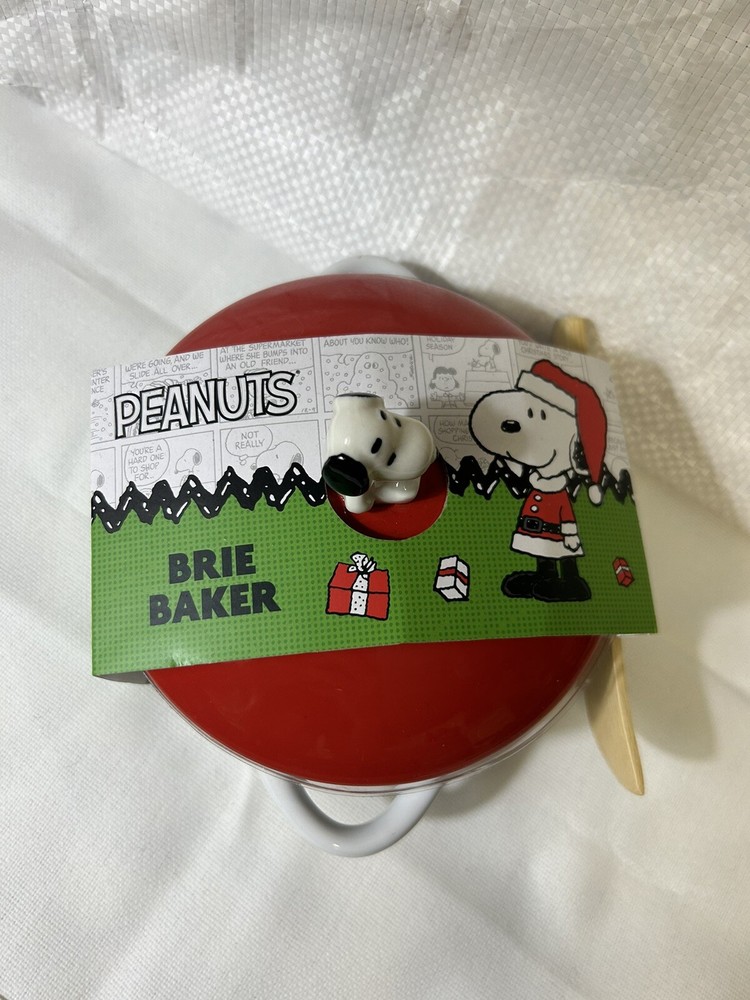 This unique Peanuts Charlie Brown & Gang Christmas Brie Baker is sure to delight any fan of the classic cartoon. The ceramic brie baker features a colorful design with Snoopy and the gang, and comes with a wooden spoon for easy serving. It's perfect for collectors or anyone looking for a fun and festive addition to their kitchen. The brie baker is manufactured in China and is part of the Peanuts franchise. It's a great gift for anyone who loves the show or collects animation merchandise. Get ready to show off your love for Snoopy and the gang this holiday season with this charming brie baker.