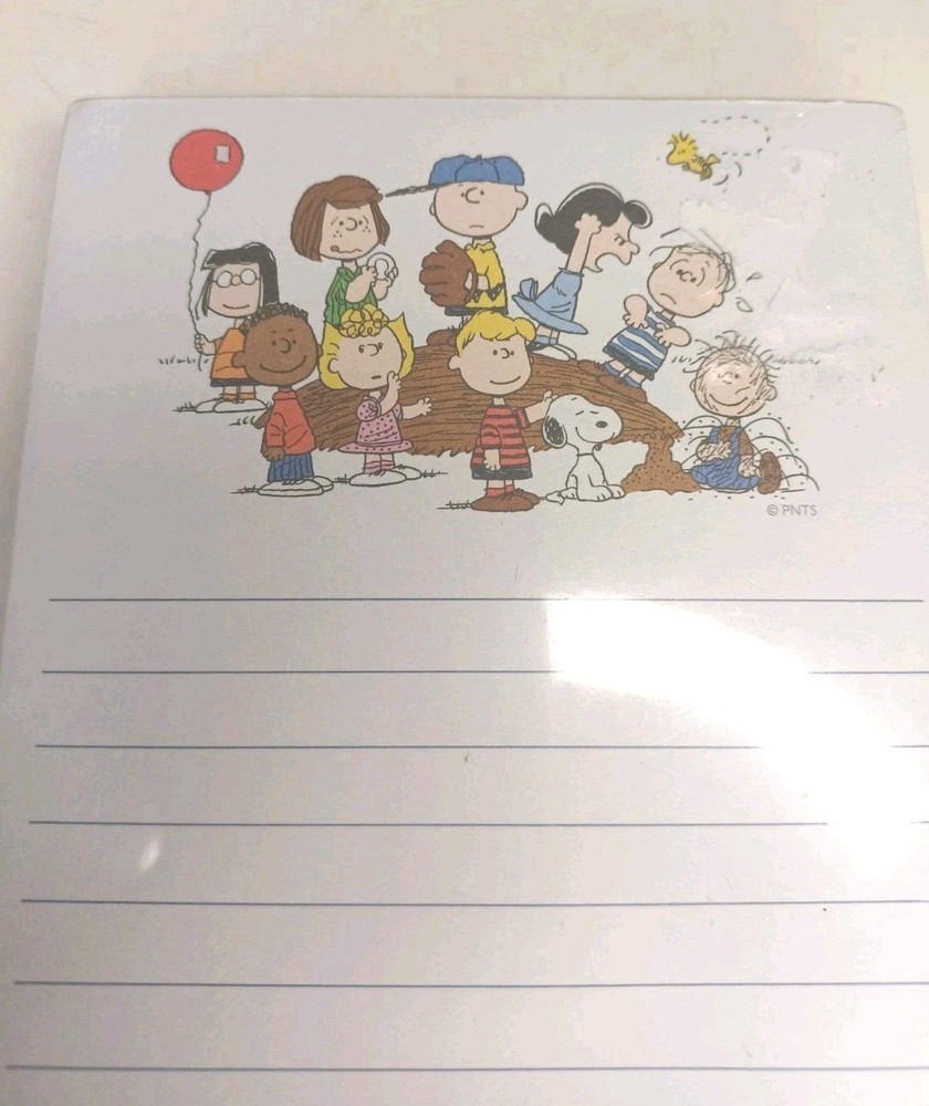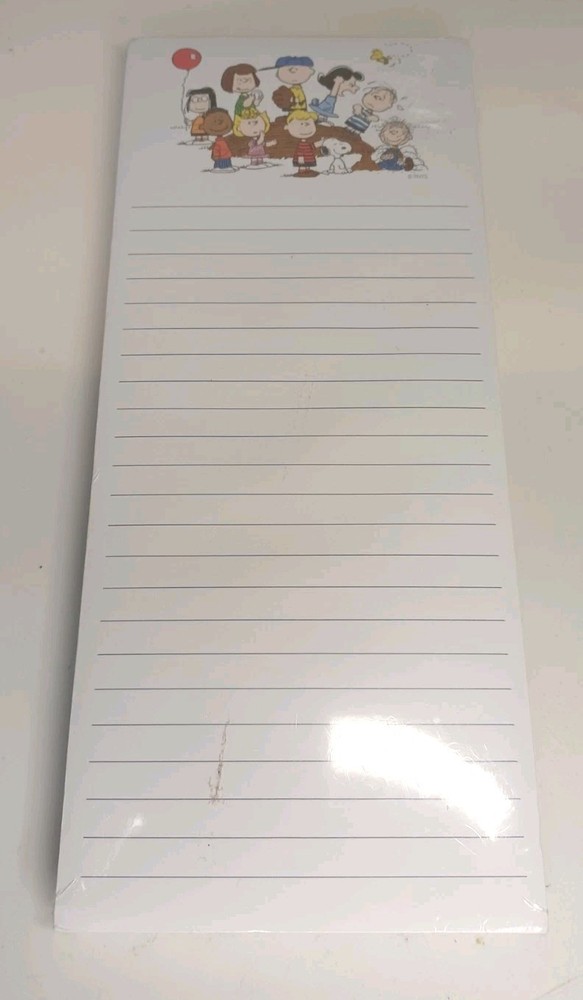 The Graphique Peanuts Gang Magnetic Notepad is a stylish and functional office supply featuring a durable plastic cover. With a unit quantity of 1, this notepad is perfect for jotting down important notes and ideas while maintaining a fun and playful aesthetic with its Peanuts Gang design. Ideal for use in a variety of office settings, this notepad helps keep you organized and creative.Cover of plastic has wear. item new inside