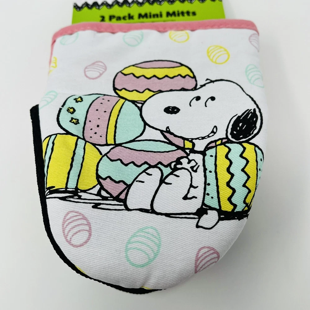 Peanuts Snoopy 2 Pack Mini Oven Mitts Easter Eggs Pink Green Yellow Springtime