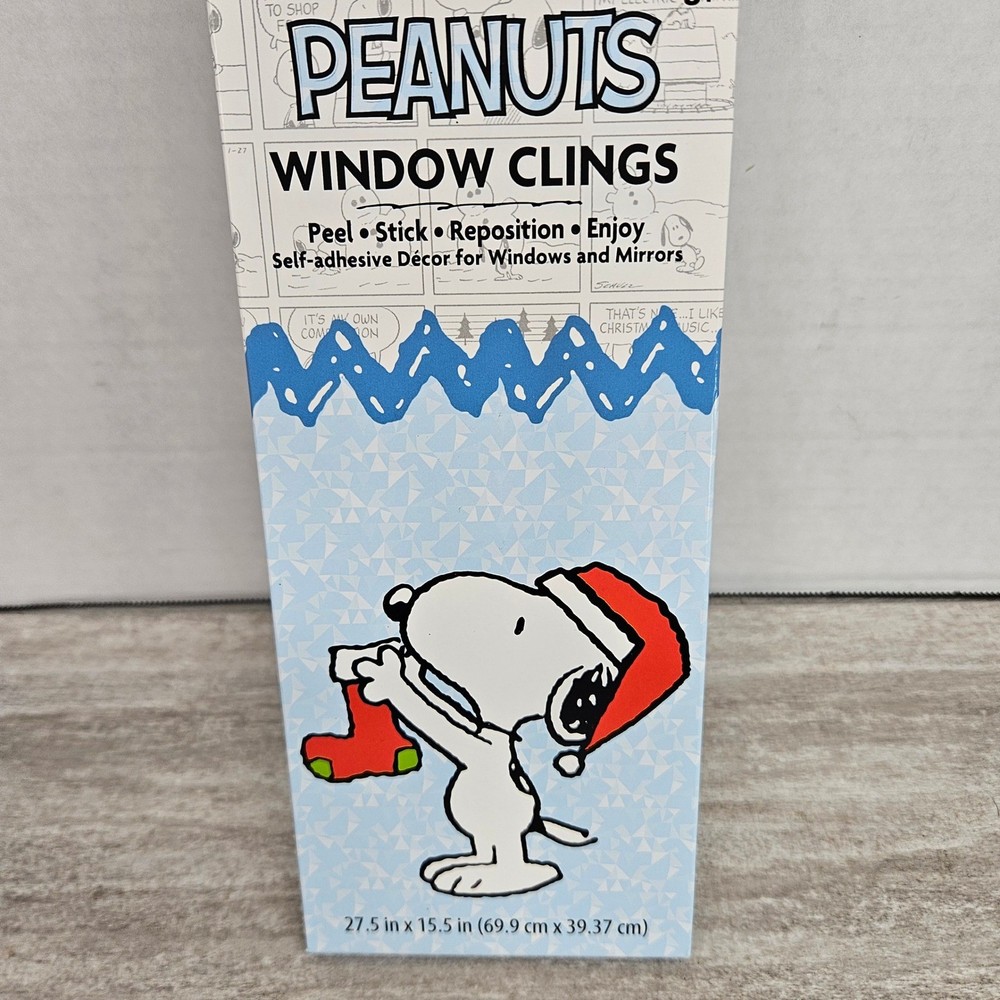 Brighten your home with these delightful Peanuts Christmas window clings. Snoopy and the gang bring festive cheer to any window or mirror with their iconic characters and holiday scenes. Effortlessly peel, stick, and reposition these self-adhesive decorations to create a whimsical winter wonderland. Perfect for adding a touch of nostalgia and fun to your holiday celebrations, these clings are ideal for decorating your living room windows, children's bedrooms, or even your office space during the festive season. Measurements: • Sheet of graphics 27.5 in x 15.5 in (69.9 cm x 39.37 cm) Type: Stickers & Decals Occasion: Christmas Material: Vinyl Department: Kids Character Family: Peanuts Character: Snoopy Item Length: 27.5 in Room: Any Room Shape: Fir Tree Item Height: 27 in Style: Vintage/Retro Item Width: 15 in Orientation: Vertical Care Instructions: Clean with Damp Cloth Unit Type: Unit Keywords: Snoopy, Christmas, Holiday, Window Clings, Peel and Stick, Reusable, Festive, Decorations, Winter, Kids, Family, Merry