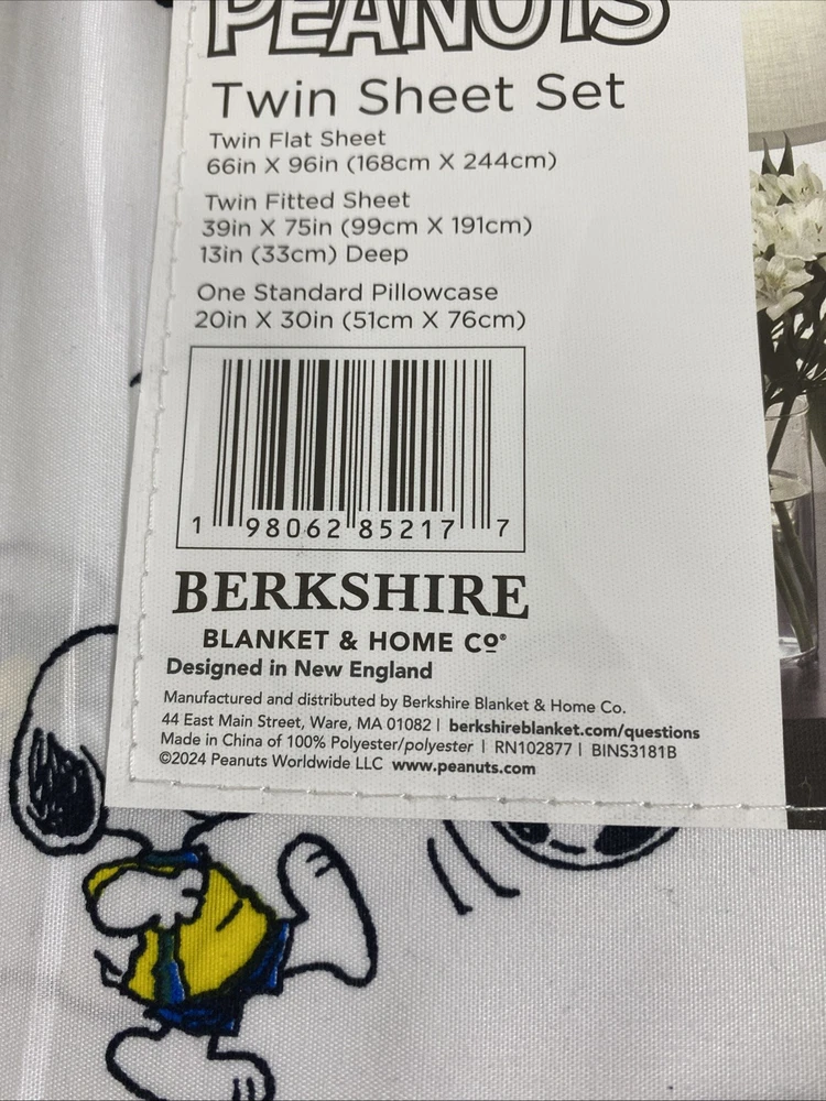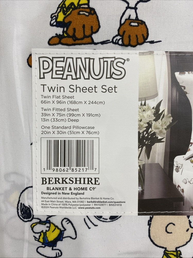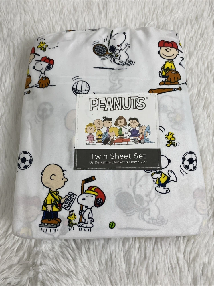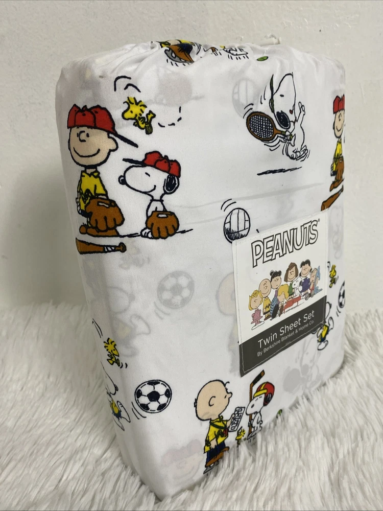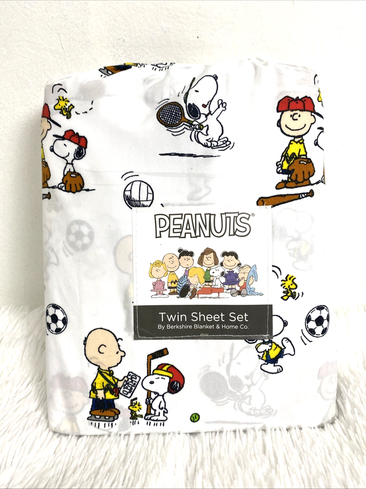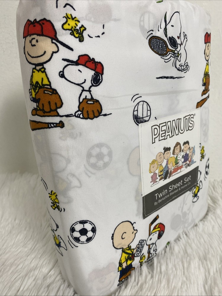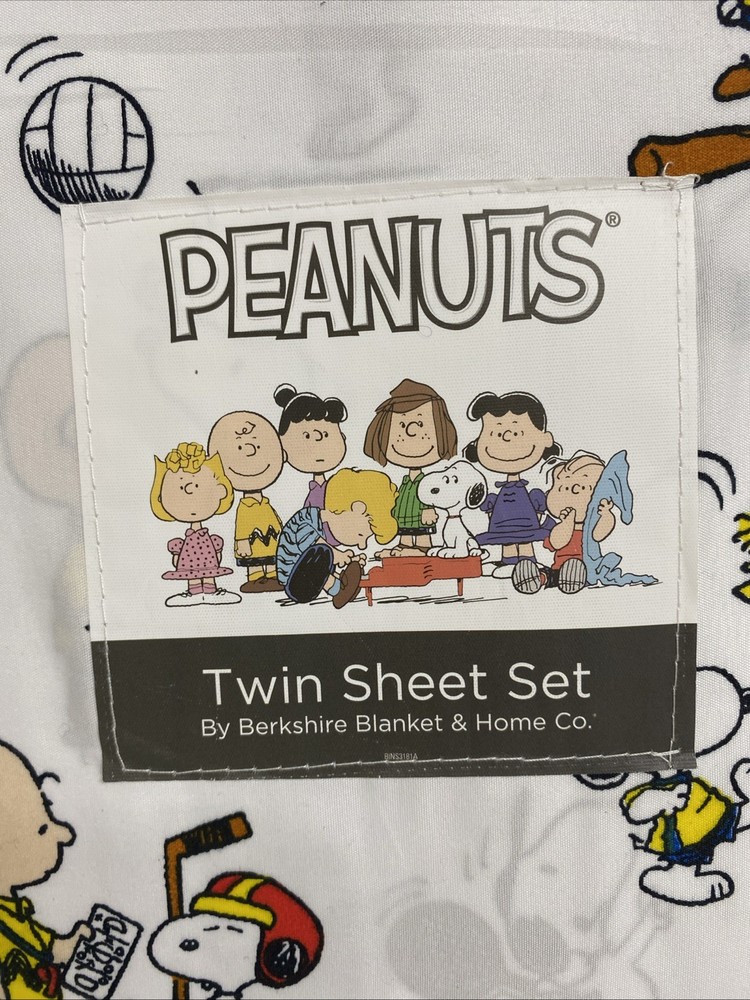Peanuts Snoopy Twin Sheets Set 3 Pieces Boys Sports Printed White new please see pictures for more details