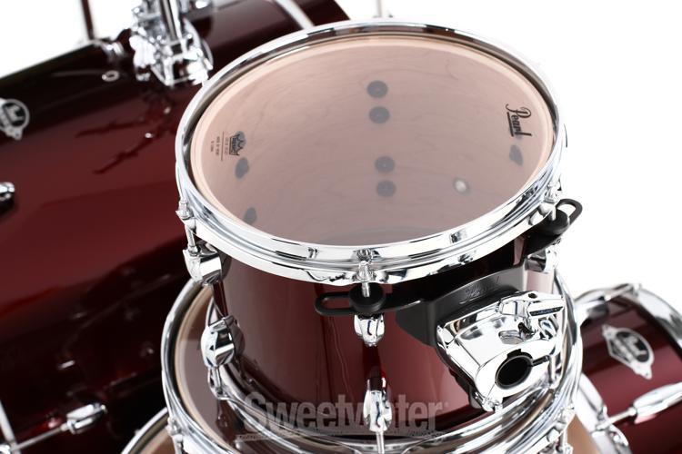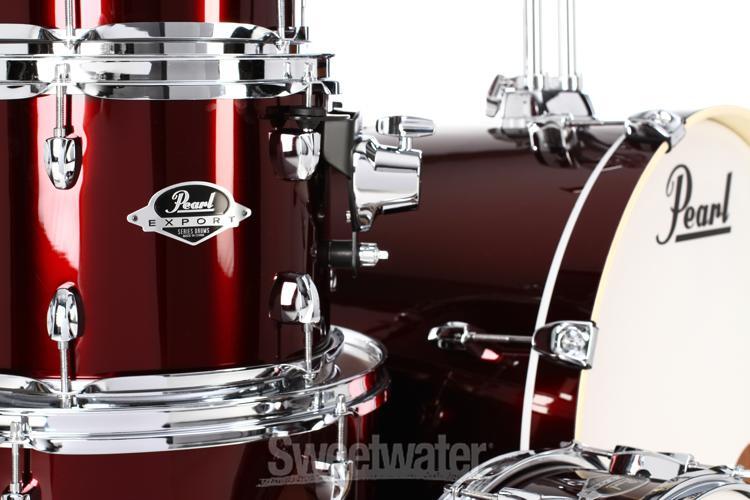 Own One of the World's Most Popular Drum Kits Upgraded shells, hardware, and more make this Pearl Export 5-piece drum set an upgraded version of one of the most popular and affordable drum kits around. Inspired by Pearl's Reference series, this Export kit's Superior Shell Technology (SST) uses a combination of strategically arranged plies of premium wood and proprietary construction techniques to offer you a durable shell that maximizes frequency response. The Opti-Loc mounting system keeps your toms wobble-free while reinforcing the resonance of the kit. The included 830 series hardware adds big bang for the buck with the Pearl Export drum kit. All you need to do is add the cymbals!Superior Shell Technology The Pearl Export 5-piece drum kit's poplar and Asian mahogany shells are constructed using Pearl's proprietary Superior Shell Technology. This construction method incorporates Pearl's trademarked Acoustiglue, which is boiled into the shells and pressed at over Sweetwater is an Authorized Pearl Dealer Genuine New Item Sweetwater's 2-year warranty Pearl Export 5-piece Drum Set with Snare Drum - Burgundy 5-piece Drum Kit with 10" and 12" Toms, 16" Floor Tom, 22" Bass Drum, and 14" Snare - Burgundy Own One of the World's Most Popular Drum Kits Upgraded shells, hardware, and more make this Pearl Export 5-piece drum set an upgraded version of one of the most popular and affordable drum kits around. Inspired by Pearl's Reference series, this Export kit's Superior Shell Technology (SST) uses a combination of strategically arranged plies of premium wood and proprietary construction techniques to offer you a durable shell that maximizes frequency response. The Opti-Loc mounting system keeps your toms wobble-free while reinforcing the resonance of the kit. The included 830 series hardware adds big bang for the buck with the Pearl Export drum kit. All you need to do is add the cymbals! Superior Shell Technology The Pearl Export 5-piece drum kit's poplar and Asian mahogany shells are constructed using Pearl's proprietary Superior Shell Technology. This construction method incorporates Pearl's trademarked Acoustiglue, which is boiled into the shells and pressed at over 1,000 pounds of hydraulic pressure, making the shell act and resonate as a single ply. SST uses precision-cut scarf joints to join the seams of the shells, offering over 800% more contact area than standard butt joints. This technology makes these drums so durable that they come with a limited lifetime warranty from Pearl. To make these shells sound even better, Pearl outfitted them with new lugs that minimize shell interaction for maximum resonance and sustain. Opti-Loc mounting system reduces wobble and improves resonance Pearl Export series Opti-Loc mounting system features a triangular design with two tension rod attachment points that hold your toms firmly in place with no wobble. Pearl places rubber isolators at all of the connection points to allow the shells to vibrate freely for more sustain and resonance. The Opti-Loc mounting system keeps your toms right where you need them and sounding their best, whether you're practicing at home or recording drum tracks at a studio. Included Pearl 830-series hardware and P-930 pedal The high-quality 830 series hardware included in this Pearl Export EXX 5-piece drum kit is a sophisticated addition. Utilizing infinitely adjustable Uni-Lock tilters, you have the ability to position your cymbals and snare drum precisely. The 1-inch base tubes and 0.87-inch center tubes with double-braced tripods are exceptionally sturdy. The included P-930 bass drum pedal combines Pearl's Demon Drive pedal with their Eliminator interchangeable cam technology to dial in your power and control. Pearl Export 5-piece Drum Set Features: SST construction for durability and tone Hand-selected mahogany/poplar shells Opti-Loc mounting system for wobble-free performance and improved resonance 830 series hardware is easy to position and very stable P-930 drum pedal combines 2 popular Pearl designs Specification Detail Finish Burgundy Wrap Configuration Drum Kit Number of Drums 5 Snare (Depth x Diameter) 5.5" x 14" Mounted Toms (Depth x Diameter) 7" x 10", 8" x 12" Floor Toms (Depth x Diameter) 16" x 16" Bass Drums (Depth x Diameter) 18" x 22" Shell Material Asian Mahogany/Poplar Hybrid Included Stands 1 x Cymbal Boom Stand, 1 x Cymbal Straight Stand, 1 x Hi-hat Stand, 1 x Snare Stand Included Drum Pedal 1 x P-930 Single Kick Pedal Tom Holders 2 x TH70I Tom Arms RETURN INFORMATION We want you to be completely happy with your purchase from Sweetwater. If you are not satisfied with your product, you may return it for a refund of the purchase price within 30 days. If your purchase was eligible for Free Shipping, the shipping cost will be deducted from your credit or refund. Returns must be in the complete and original packaging with all accessories and complete documentation (Owner's Manual, warranty card, quick start guides, etc.), show no signs of wear or use, and include a Return Authorization number or be subject to a restocking fee.