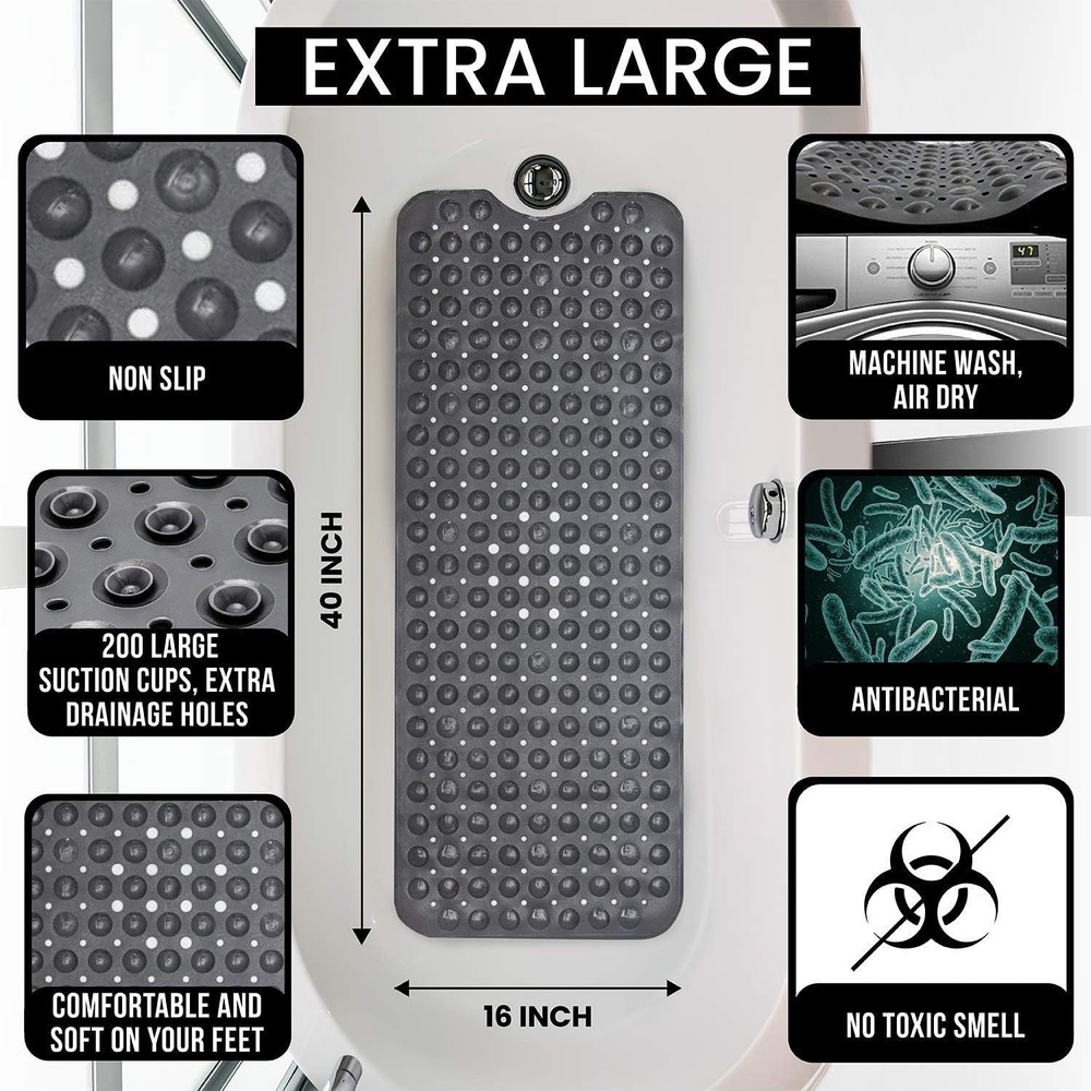 Non-Slip Anti-Mold Bathtub Mat 35x16 with Suction Hooks for Safety