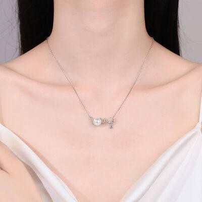 Pieces: 1-piece Material: Freshwater pearl, 925 sterling silver, Moissanite Carat weight: 0.1 Care instructions: 1. Avoid wearing during exercise, as sweat will react with the jewelry to produce silver chloride and copper sulfide, which causes the jewelry to deteriorate and corrode over time. 2. While wearing the pearl jewelry, avoid exposure to the sun and contact with highly volatile substances such as perfume and hairspray, as it will easily fade in color and lose its luster. Imported Product measurements: One Size: Chain length 15.7 in, Extension chain length 2 in Main stone 0.1 carat Pearl size 0.3 in Weight 3.3 oz (93.7 g)