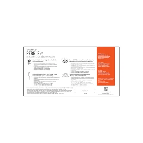 PERFECT FOR THE MINIMALIST’S DESKTOP | Designed with a clean and modern look in mind, Pebble V2 follows the same form factor as Pebble, and fits into any minimalist’s office, home, workspace, and battlestation setup. With a longer cable connecting the right to left satellite speakers and the same front-facing knob for easy access to volume control, Pebble V2 is the perfect fit for any desktop LATEST USB-C CONNECTIVITY AND AUX-IN | An upgrade from Pebble, Pebble V2 is now future-proof and is powered by USB-C, which is found on newer computers. The USB-C connectivity allows the speaker to draw more power for improved audio quality at higher volume without distortion. Simply connect your devices via both the universal 3.5 mm AUX-in for audio playback and the USB-C for power. We have included a USB-C to USB-A converter that allows you to use Pebble V2 on your older computers BUILT-IN GAIN SWITCH FOR AMPLIFIED AUDIO | Up to 2 times more powerful than Pebble, enjoy amplified audio when you plug Pebble V2 to a 10W USB-C or USB-A port. The speakers will activate high gain mode for increased volume levels of up to 8W RMS of total power and up to 16W peak power POWERFUL 2” FULL-RANGE DRIVERS AND PASSIVE RADIATORS | Featuring an improved custom-tuned far-field drivers and rear-facing passive radiators, Pebble V2 delivers richer and louder audio with enhanced bass reproduction for the ultimate music enjoyment 45° ELEVATED DRIVERS | Pebble V2 retains the same 45° elevated drivers as Pebble that are specifically angled, to project audio directly towards you for an immersive personal listening experience
