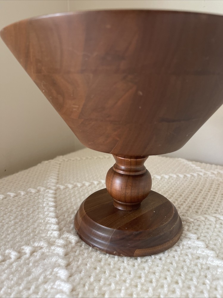 Pedestal Bowl Walnut Wood Footed Centerpiece Vintage Mid Century MCM Minimalist Please see photos.