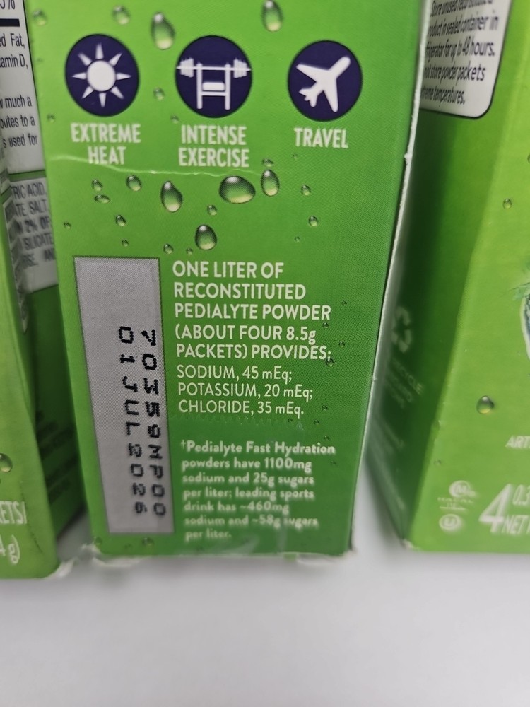 4 Boxes Pedialyte 2x Electrolyte Powder, Fast Hydration, APPLE FLAVOR 16 Total packs. 4 PER BOX FREE SHIPPING ANY FURTHER QUESTIONS PLEASE FEEL FREE TO ASK. SHIPPING: WE REGULARLY SHIP OUT SAME DAY NEXT DAY EXCEPT ON WEEKENDS IT WILL GO OUT MONDAY. OUR ITEMS HAVE DELIVERY CONFIRMATION NUMBERS . WE DO COMBINE SHIPPING WHERE APPLICABLE SO PLEASE CHECK OUT OUR OTHER GREAT ITEMS IN OUR STORE. RETURNS: WE DO OFFER RETURNS. IF YOUR ITEM IS NOT TO YOUR SATISFACTION BECAUSE OF A MISTAKE BY US WE WILL GLADLY REFUND YOUR MONIES ONCE THE ITEM IS RETURNED. ITEM MUST BE RETURNED IN ORIGINAL PACKAGING UNOPENED FOR FULL REFUND. WE WILL NOT REFUND FOR ANY OTHER REASON. FEEDBACK: WE VALUE OUR BUSINESS WITH THE EBAY COMMUNITY. IF YOU HAVE A SITUATION THAT YOU ARE UNHAPPY WITH PLEASE CONTACT US FIRST SO WE CAN WORK WITH YOU TO FIX THE SITUATION. FEEDBACK IS AS IMPORTANT TO YOU AS IT IS TO US. UNFORTUNATELY A LOT OF PEOPLE DON'T LEAVE FEEDBACK AND GET UP SET AND LEAVE NEGATIVE FEEDBACK BEFORE TRYING TO WORK ANYTHING OUT WITH THE SELLER. WE WILL LEAVE FEEDBACK ONCE THE BUYER LEAVES FEEDBACK AND WE KNOW THAT THEY ARE HAPPY. THANKS AND HAPPY BUYING