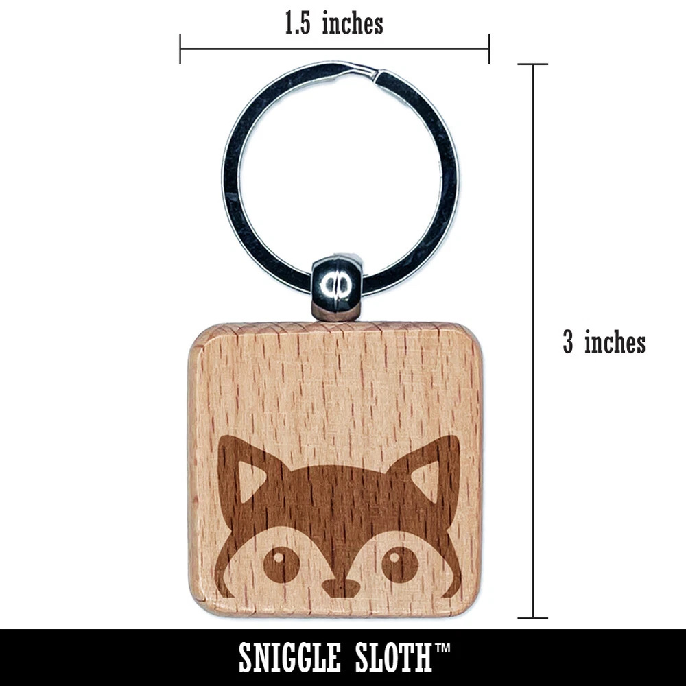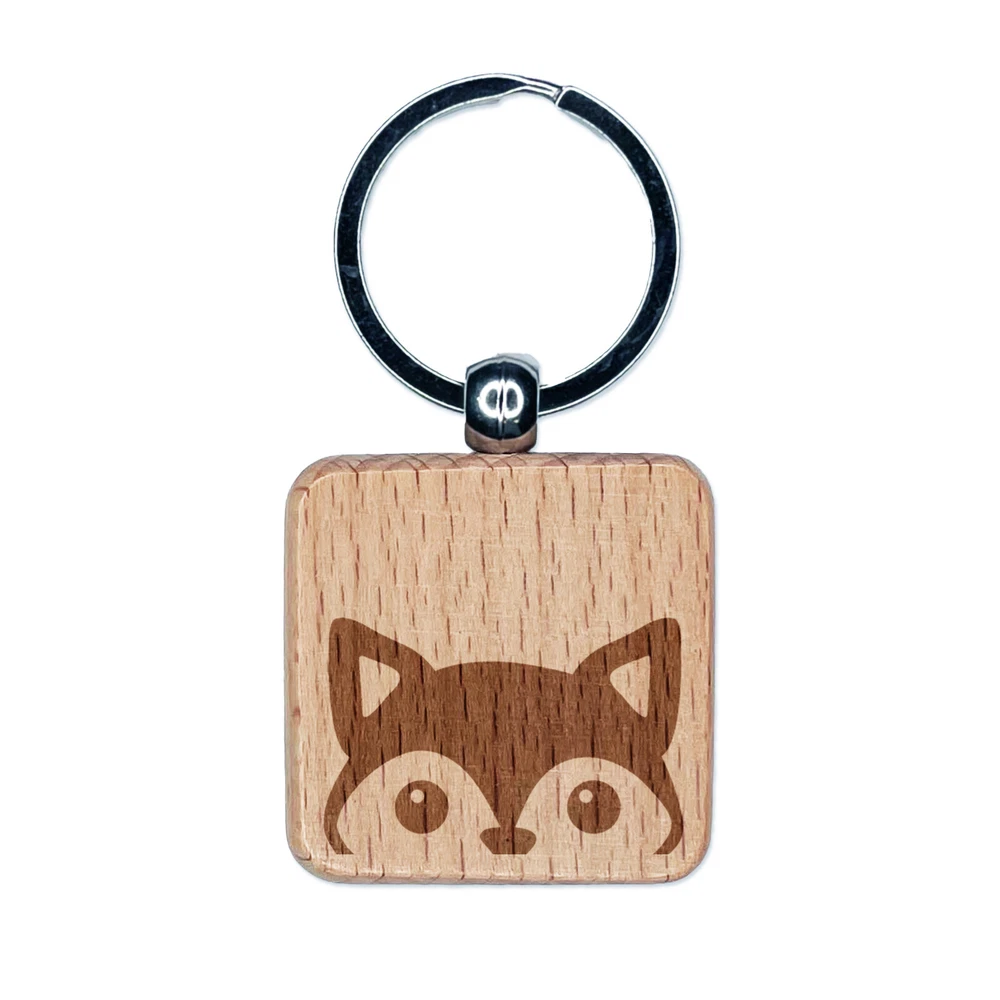 Peeking Fox Engraved Wood Square Keychain Tag Charm