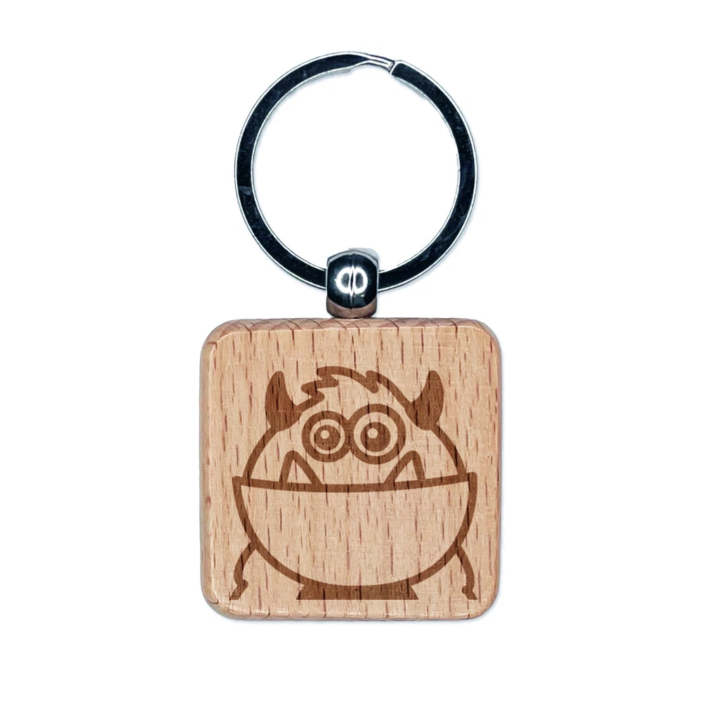 Peeking Monster Engraved Wood Square Keychain Tag Charm