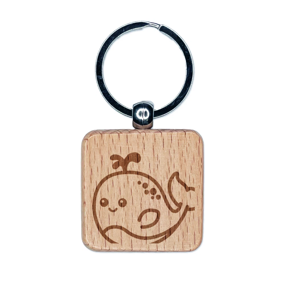 Peeking Whale Engraved Wood Square Keychain Tag Charm