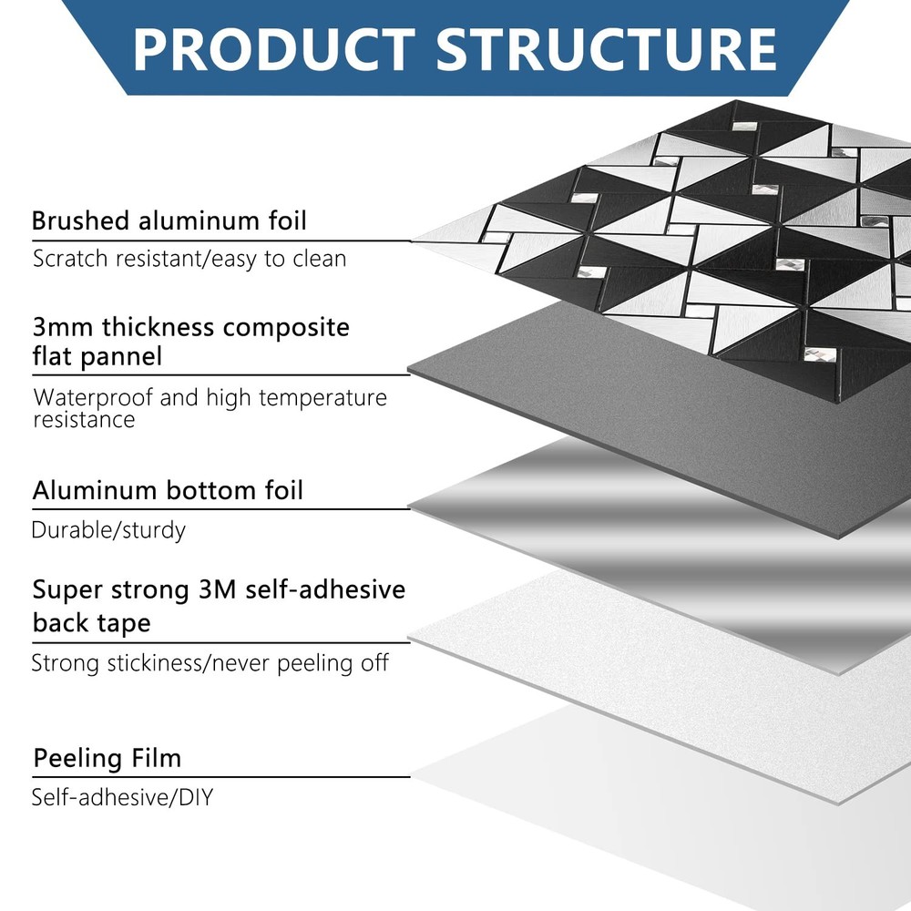 peel and stick backsplash kitchen backsplash tiles peel and stick miscasa wallpaper wall paper sticker pull and stick sink remodel staircase retro drawer craft project pu farmhouse ceramic wall tile peel and stick backsplash kitchen sheet stickers metal tiles ✿PINWHEEL PATTERN TILE:10 Sheets high quality black&silver peel and stick backsplash, 12"x12"x0.12" each,cover about 10 square feet. This square peel and stick backsplash makes installation easier and reduces cutting waste. Bright triangular cut metal and glass designs combine to make your overall home look brighter and more spacious. ✿HIGH QUALITY WALL TILE:Glass and Metal peel and stick tile made of aluminum and PVC composite laminates, safe and environmentally friendly, scratch resistant, high impact, colorfast. Thicker than regular vinyl peel stick backsplash tile for kitchen and more durable than plastic self-adhesive tile. ✿MOISTURE AND HEAT RESISTANT:The metal kitchen backsplash tiles peel and stick are durable, water, oil and heat resistant, keep walls free from splashes and oil, and can be wiped easily even with stains. ✿DIY DESIGN:Just peel and stick, no deformation, no peeling, no need for extra glue, you can easily cut the peel and stick backsplash for kitchen with a sharp cutting knife, and you are free to create a high-end look yourself. ✿WIDELY USED:This metal peel and stick tile backsplash can be used for walls in kitchens, bathrooms, stove backsplashes, bedroom wall backsplashes, laundry rooms, furniture decor, fireplace decor, washbasins, pet rooms, and more.