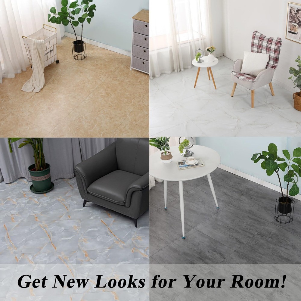 If you are looking for a way to renovate your old floorings at a low cost, vinyl floor tile is your best choice! ๐๐๐๐๐ก๐๐ ๐ ๐ข๐๐ง๐๐ก๐ ๐๐ก๐ค๐ค๐ง ๐ฅ๐๐ฉ๐ฉ๐๐ง๐ฃ ๐๐๐จ๐ฎ ๐๐ฃ๐จ๐ฉ๐๐ก๐ก๐๐ฉ๐๐ค๐ฃ: Just peel and stick on floor. ๐ฟ๐๐ ๐๐จ ๐ฎ๐ค๐ช ๐ฃ๐๐๐: Light yet sturdy trimmable vinyl floor tiles, cut to fit any place in any shape. ๐๐๐จ๐ฎ ๐ง๐๐ข๐ค๐ซ๐๐ก: Leave no residue when any removal or replacement is needed. ๐๐๐จ๐ฎ ๐๐ก๐๐๐ฃ๐๐ฃ๐ ๐๐ฃ๐ ๐ข๐๐๐ฃ๐ฉ๐๐ฃ๐๐ฃ๐๐: Clean the waterproof vinyl flooring with wet cloth or mob. ๐๐ฉ๐๐๐ก๐ ๐๐ฃ๐ ๐๐ช๐ง๐๐๐ก๐: Waterbased pressure sensitive adhesive ensures stability. Anti-scratch material ensures durability and longevity. ๐๐ช๐ก๐ฉ๐๐ฅ๐ก๐ ๐๐ฅ๐ฅ๐ก๐๐๐๐๐ก๐ ๐ค๐๐๐๐จ๐๐ค๐ฃ๐จ: Can be used for kitchen floor, living room flooring, bathroom floor tiles, garage floor, office floor renovation, etc., on surfaces such as cement, old marble flooring, floor paint, terrazzo, heating floor, wood floor etc. We offer a 30-day full-money-back guarantee. Do not hesitate to ask if you have any questions about our floor tiles or installation. We'll try our best to help! Premium quality: vinyl floor tiles are made of high-quality pvc, which ensures durability and longevity. These peel and stick vinyl floor tiles are sturdy, waterproof, heat-resistant and anti-scratch. The lifelike marble patterns make the vinyl tiles look the same as traditional marble floor tiles. Peel and stick: No need to hire professionals to install the floor tiles. made the tiles peel and stick floor tiles, and the vinyl tiles are trimmable to meet any DIY need. Even a lady can easily renovate her flooring with these peel and stick vinyl floor tiles. If any replacement or removal is needed, the vinyl floor tiles can be removed without leaving residue. Easy to clean: You can clean the waterproof peel and stick vinyl tiles the same way as cleaning traditional marble floor tiles. The vinyl tiles that adhere to the floor tightly are waterproof and not easy to get dirty. You don't have to worry about laborious cleaning. Various place applicable: These peel and stick vinyl floor tiles are ideal laminate or linoleum floor replacements. The vinyl flooring tiles can stick on any flat and clean surface, such as cement, old marble flooring, floor paint, terrazzo, heating floor, wood floor, etc., in living rooms, bedrooms, kitchens, bathrooms, office, garage, and more. Size and thickness: The size of each floor tile is 12x12 inch (30.48x30.48cm), and the thickness is 0.06 inch (1.5mm). Each pack includes 10 vinyl tiles, covering a total area of 10 square feet (0.93 square meter).