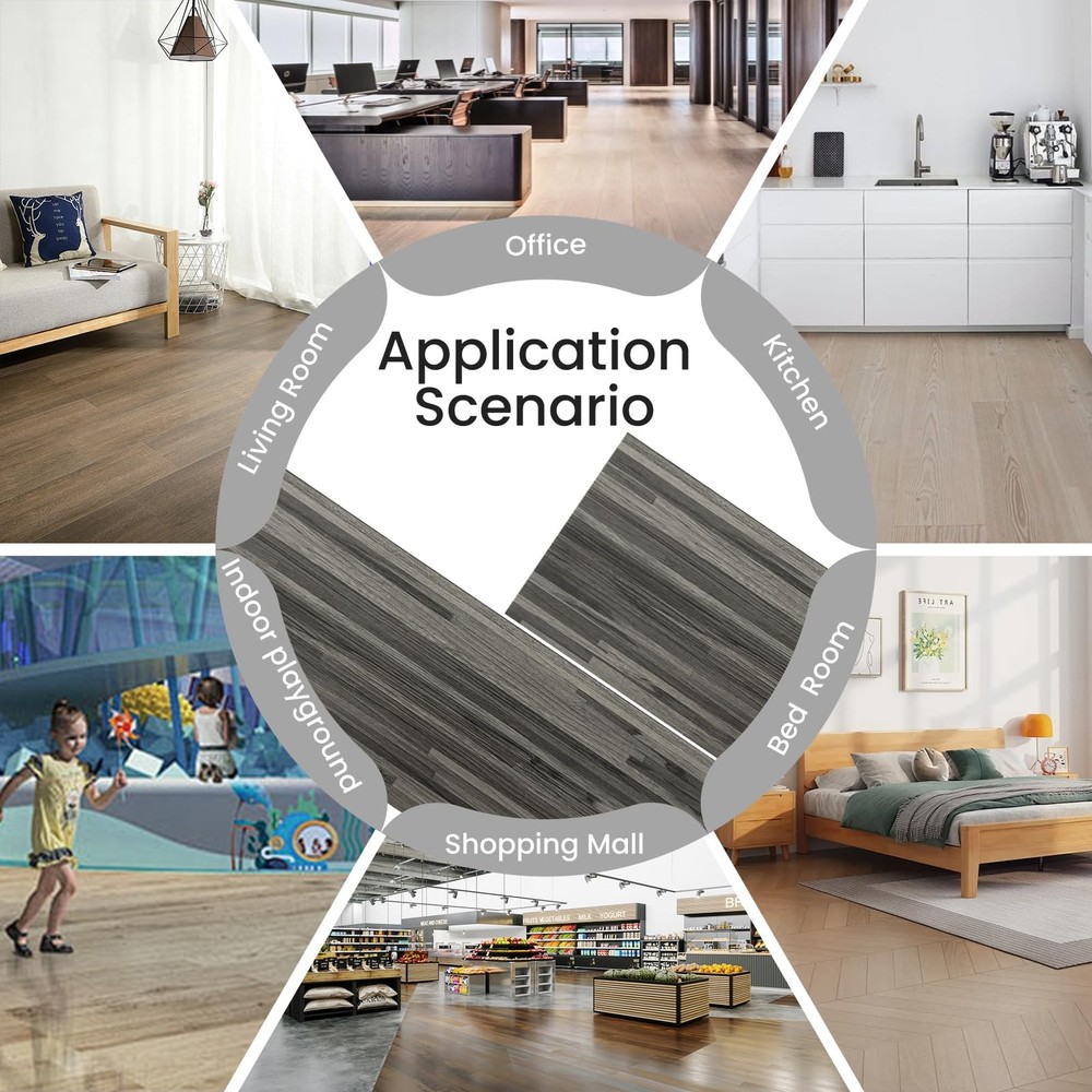 Why choose us? Powerful Feature - Strong self-adhesive and UV treatment make our PVC floor durable, good quality and longer service life. Also they are 100% waterproof, easy cleaning, stain & wear & scratch resistant, non-toxic and fire prevention. Easy DIY - Just peel and stick, on a flat floor or wall for installation, no tools, no experience, no glue. Everyone can do it. Dimention: Plank dimension: 6" width x 16.5" length x 0.07"thickness, pack of 34 pcs, covers 23.5 Sq.Ft. Made of high quality vinyl, durable, textured finish, low gloss, authentic wood look and feel. 100% Waterproof and Self-adhesive: peel and stick vinyl flooring planks use strong adhesive, which can hold the planks to flat ground firmly. Tiles are 100% waterproof with an IXPE integrated sound reduction underlayment that does not absorb water. Peel and Stick: Our vinyl flooring is easy to install, simply peel and stick the tiles to a flat and dry surface to give your home a brand-new look. Stylish: These vinyl floor tiles have the look and feel of natural wood grain. flooring tiles come in many natural wood-look colors so you’re sure to find the perfect match for any space. Application: Peel and stick floor tile for bathroom, bedroom, living room, kitchen, dining room, laundry room, basement, garage, RV floor, home decor, office, can be installed over most subfloor including concrete, vinyl laminate, plywood, ceramic tile