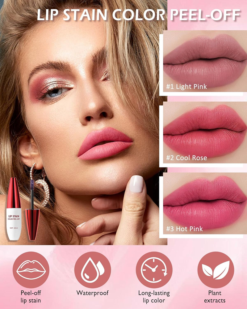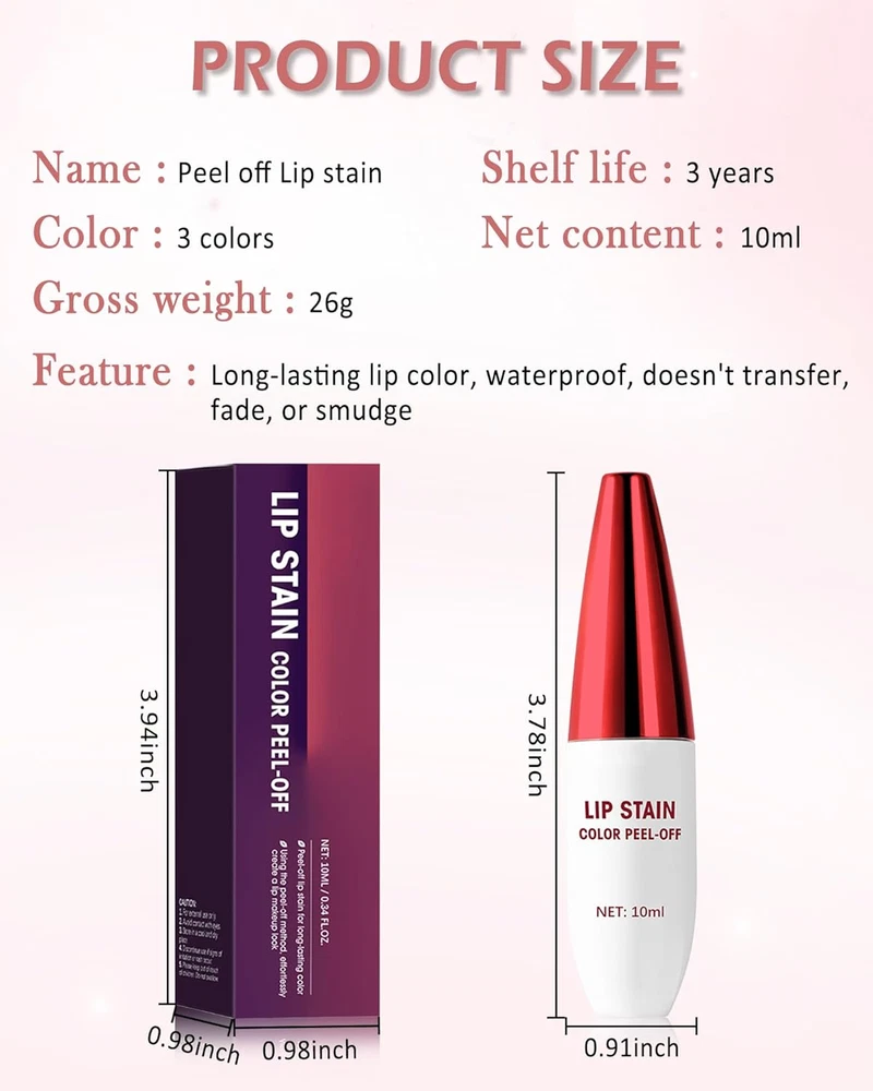 Peel off Lip Tint Stain Set-3Pcs Nude Pink Rose Tattoo Lip Liner Stain with Matte Finish,Lip Gloss Long Lasting Waterproof Tinted Colored Lipliner Lipstain,Mother'S Lip Makeup Gift for Women Girl Peel-Off Lip Stain Set -The peel-off lip Stain is designed to simplify makeup application by simply applying along the lip line, and then fill your lips. leaving it to form a film and then gently peeling it off, eliminating the need for traditional lip gloss techniques. You can layer a glossy lip glaze to suit your needs. We offer a variety of combinations to suit the individual needs and makeup styles of different customers. Long-wearing Tattoo Lip Stain - This lip Stain has good adhesion and long-lasting, even after eating or drinking, it still retains a certain amount of color, allowing you to go through the day confidently and worry-free. Matte Finish & Ultra-pigmented Formula: - The matte texture doesn't give a heavy feeling and allows for a more natural look. With the tearing method, it can leave a soft shadow line around the lips, making the lips look fuller and more natural, with high color development, it can cover lips without affecting the matching of subsequent lipsticks. How To Use - Firstly, apply the lip gloss evenly on the lips with a lip brush, you need to wait for some time after application to let the lip gloss dry into a film. During this period, do not touch your lips with your hands or purse your lips, so as not to affect the film-forming effect of the lip gloss; when the lip gloss is dry, tear off the dry layer of the lip gloss, and the color of the lip gloss will be revealed. Best Gift - We have prepared a set of 3 peelable lip glosses for you, with different shades to create a smooth, extremely intense color on your lips. Use this super easy-to-use lip liner to line your lips, fill in lip color, and define your lips! It can add color to your everyday makeup, but also shine on important occasions such as parties and dates. Perfect for giving as a gift to others! Peel Off Lip Tint Stain Set-3Pcs Pink Rose Tattoo Lip Liner Stain with Matte Finish, Lip Gloss Long Lasting Waterproof Nonstick Tinted Colored Lipliner Lipstain,Christmas Nurse Week, Women's Day, Mother's Day Lip Makeup Gift Kit for Women Description: Packing Including: 3pcs *Peel Off Lip Stain Shelf Life: 3 years Net Weight:16g*1pcs Feature: 1. Peel Off Lip Stain adheres to the lips for a long time and the color does not come off easily, even when eating, drinking or swimming. 2.In addition to providing color, tear-off lip glosses also contain moisturizing ingredients that help keep lips feeling hydrated. 3. Our products are cruelty-free and vegan, using natural ingredients, free of harmful chemicals and suitable for most skin types. How to use: 1. First, use a lip brush to apply the lip gloss evenly on the lips, covering the original lip color. 2. Once applied, wait a while for the gloss to dry and form a film. Do not touch your lips with your hands or purse your lips during this time. 3. After the lip gloss dries, gently tear from the outside to the inside of the lips to tear off the dry lip gloss layer, at which time the color of the lip gloss will be revealed. Warm Tips: 1. Keep away from children and fire. 2. Store in a cool place to avoid direct sun. 3. This product is for external use only. 4. If you feel uncomfortable during use, please stop using it immediately. 5. Due to monitor, illumination, environment and other factors, it will cause some color difference between the picture and the actual object. Dimensions 5.98 inches x 6.73 inches x 1.14 inches. Weight: 2.79 oz Specifications Color 3Pcs Item Form Cream Country of Origin China Skin Type All, Oily, Combination, Normal Finish Type Matte Package Dimensions 6.73 x 5.98 x 1.14 inches; 2.79 ounces Shipping: Shipped from the USA. Fast delivery within 2–3 days. Payment: PayPal, credit card, bank transfer. Returns: 30-day free return – we cover the shipping cost. Quality: Made in Europe/USA/China. No customs fees. VAT invoice on request. Feedback: You’ll automatically receive positive feedback after payment.