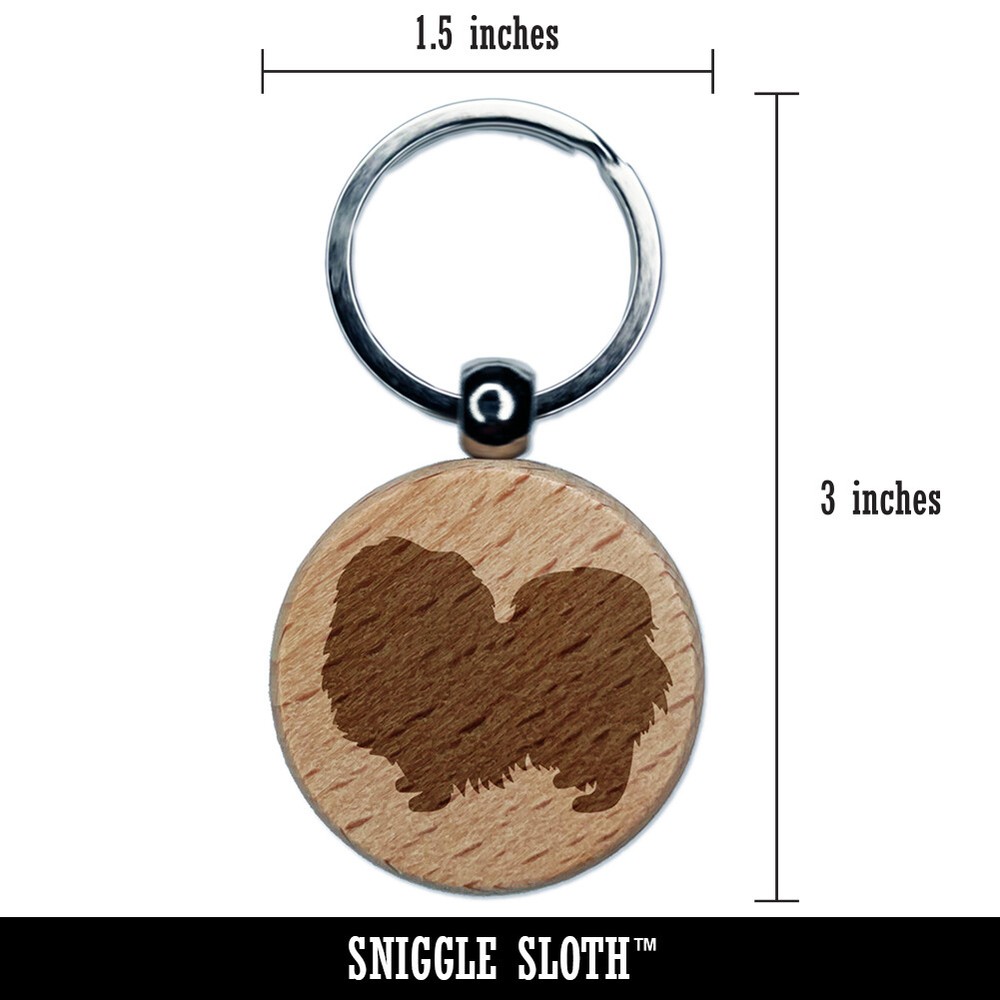 Pekingese Dog Engraved Wooden Round Keychain Charm Pet Gift
