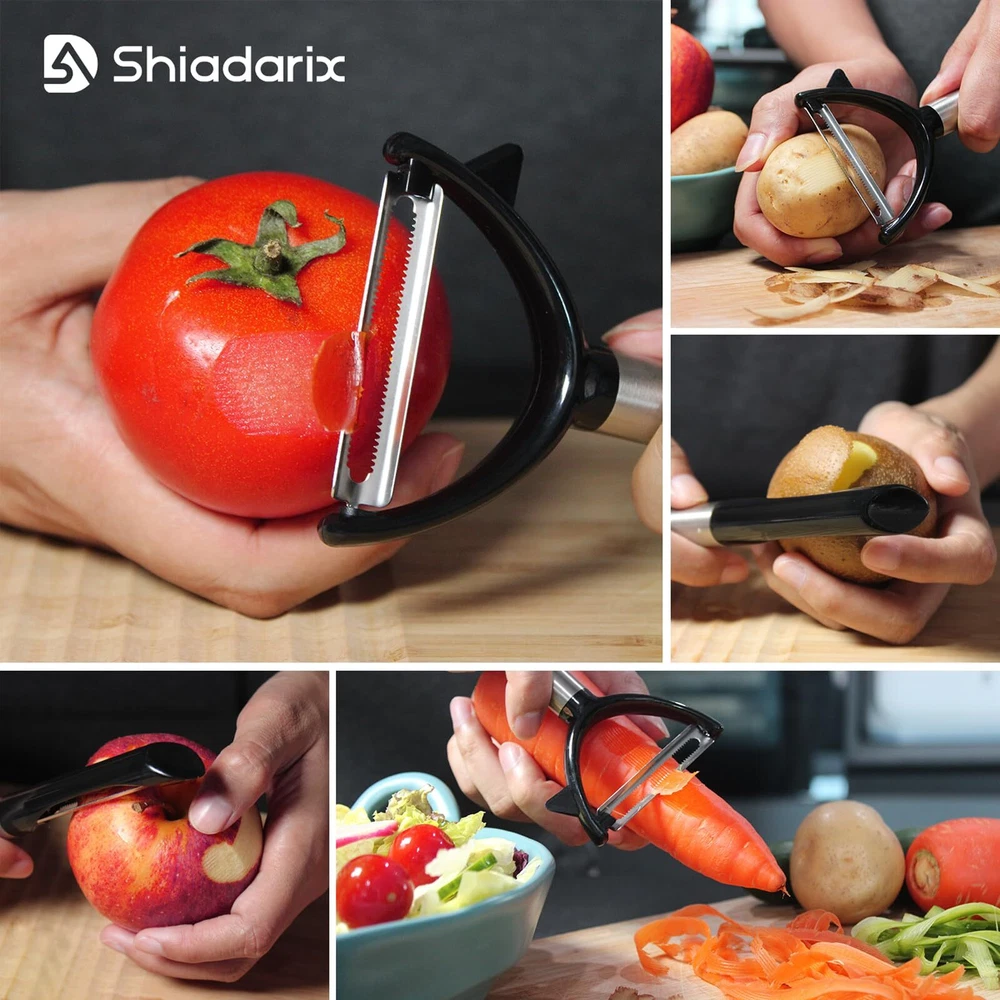 Shiadarix Vegetable Peeler, Potato Peelers for Kitchen, Veggie and Fruit Peeler for Carrot Patatoes, Y Shaped Kitchen Peeler, Stainless Steel Sharp Blade and Ergonomic Handle 💯 EFFORTLESS PEELING - Our fruit peeler is designed with sharp stainless steel serrated blades to easily remove the skins of fruits and vegetables. 🍎 MULTIPURPOSE - Veggie peeler is best for potatoes, carrot, cucumber, tomato, apple, pear, mango, kiwi and more. Built-in potato eye remover. 👍 COMFORTABLE GRIP - Our potato peeler features an ergonomic handle that provides a secure and comfortable grip for both left-handed and right-handed users. 💧 EASY TO CLEAN - Use the brush and water to thoroughly clean the carrot peeler, ensuring a complete removal of any residue. Dishwasher Safe. 🎁 PERFECT GIFT - The potatoes peeler set with beautiful package is the perfect gift for your family and friends. 100% Satisfaction Guarantee, we offer hassle-free returns or exchange SHIPPING Domestic Buyers - We have confidence in our products, but if you are not fully satisfied please contact us within 30 days of purchase and you will get full refund. - We ship within 3 business days of payment, usually sooner - We offer FREE shipping on all orders! - We only ship to the lower 48 states, no APO/FPO addresses or PO Boxes allowed International buyers – please note: Import duties, taxes, and charges aren't included in the item price or postage cost. These charges are the buyer's responsibility. - Please check with your country's customs office to determine what these additional costs will be prior to bidding or buying. * Order Cancellation Policy ** You can return a product for up to 30 days from the date you purchased it. 1. The seller reserves the right to cancel the special case only due to eBay cancellation fee. 2. The decision of seller is the final. 3. The seller will respond to the cancellation request within 2 business days. Please wait for the result of cancellation. 4. In case the cancellation is not completed by some reasons, the buyer can follow the options below to get the refund. 4.1 The buyer can reject the item when it arrives. 4.2 The buyer can send the item back to the seller within 30 days If the buyer receives item (USA Shipment ONLY). The seller will provide the FREE return label to the buyer when the buyer opens " Return Item" case on eBay by using the reason as "Change my mind" ONLY. 5. When buyer has placed the order. The order will be processed and completed by automatic warehouse system within 5 minutes. In case that buyer sends the cancellation request after 5 minutes of placing the order, the request will be rejected. **Sending direct message to cancel the order is not allowed for every case.* Return Policy For the return case - If buyer would like to return the items for refund or replacement, please CONTACT SELLER to receive the free return label from seller. The refund or replacement will be processed with the tracking number of return label which is provided by seller only. The other ways of return which are not approved by seller will not be processed for the refund or replacement.