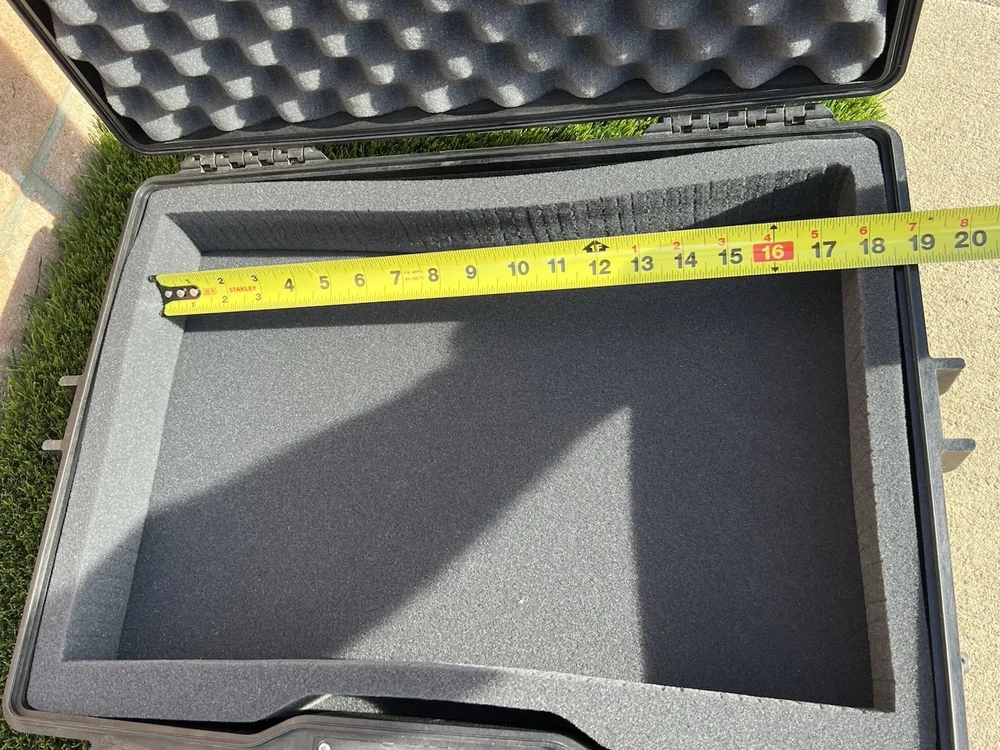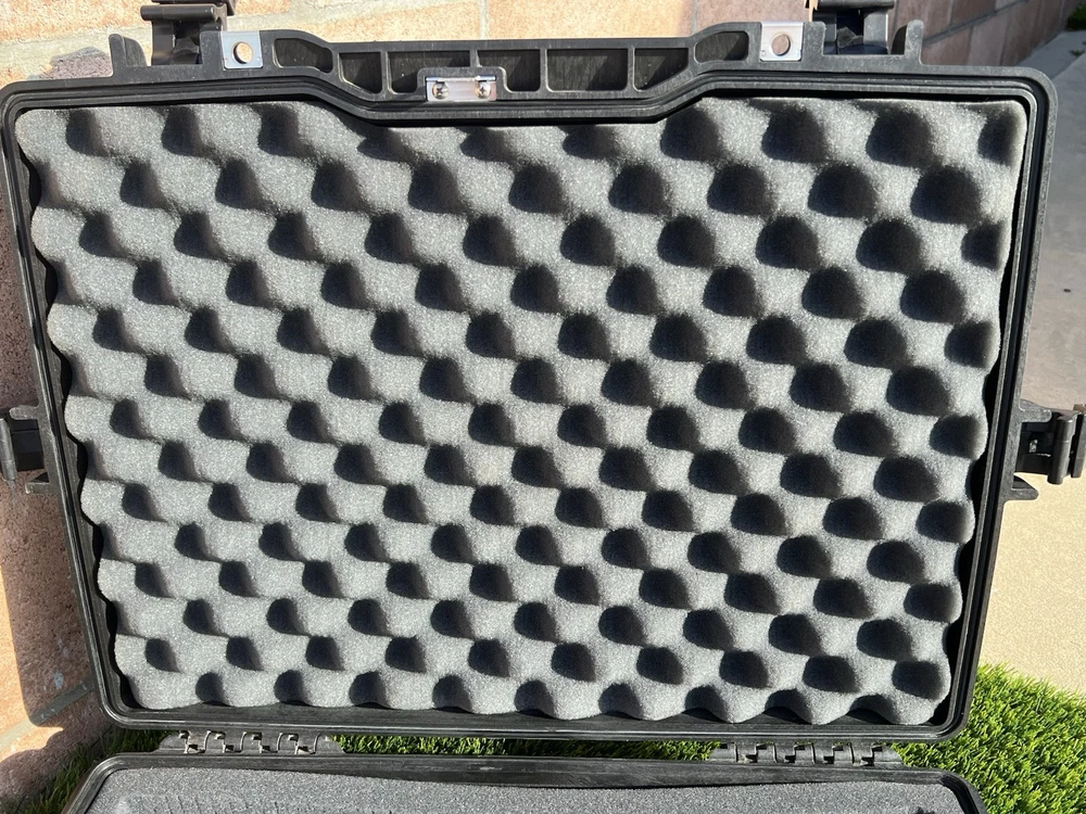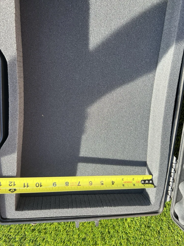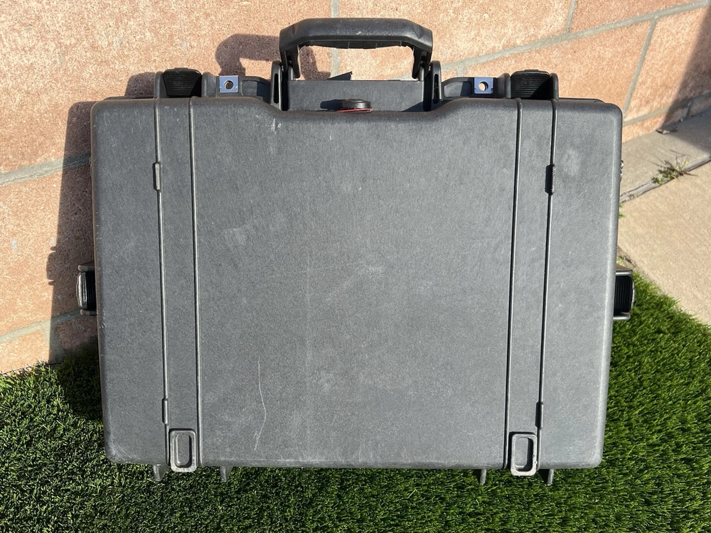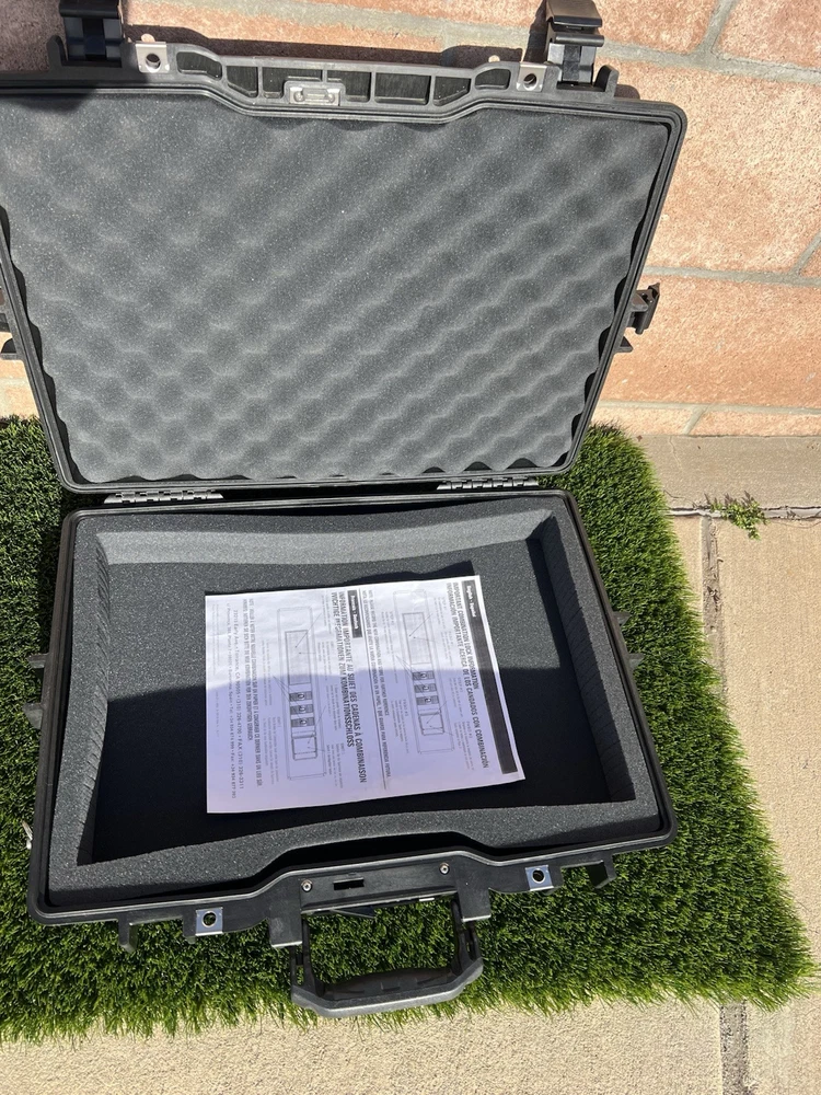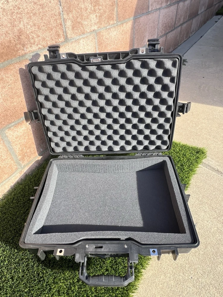 Pelican 1495 Laptop Case (Black) Waterproof Shockproof Hardcase W/ Foam Insert All are In great shape The outside has some light surface marks but the inside is immaculate. Some of the marks on each case may differ slightly but are all in the same shape. Comes with paper instructions on how to set the combo lock. All of the latches and locks function perfectly. Does not come with the original nylon shoulder strap. Ships out same or next day. Has original top and bottom foam but it is not glued so if u wanted to buy new phone and reconfigure it wont have the glue residue left behind. PREMIUM LAPTOP HARD CASE: Compatible with 17 inch laptops, MacBook Air, and select MacBook Pro models FEATURES: Watertight, crushproof, dustproof hard case design, customizable Pick N Pluck foam and convoluted lid foam. Includes 3 dial combination lock, padded shoulder strap, rubber over-mold handle, and O-Ring seal and pressure equalization valve DIMENSIONS (LxWxH Inches): Exterior 21.62 x 17.25 x 4.87 | Interior 18.87 x 13.12 x 3.81 - Weight 8.37 lbs MADE IN USA: Trusted protection in use by the military, divers, first responders (fire, police, EMT) since 1976 Fits up to 17" laptopF Watertight, crushproof, and dust proof Fold down over molded handle Automatic Pressure Equalization Valve
