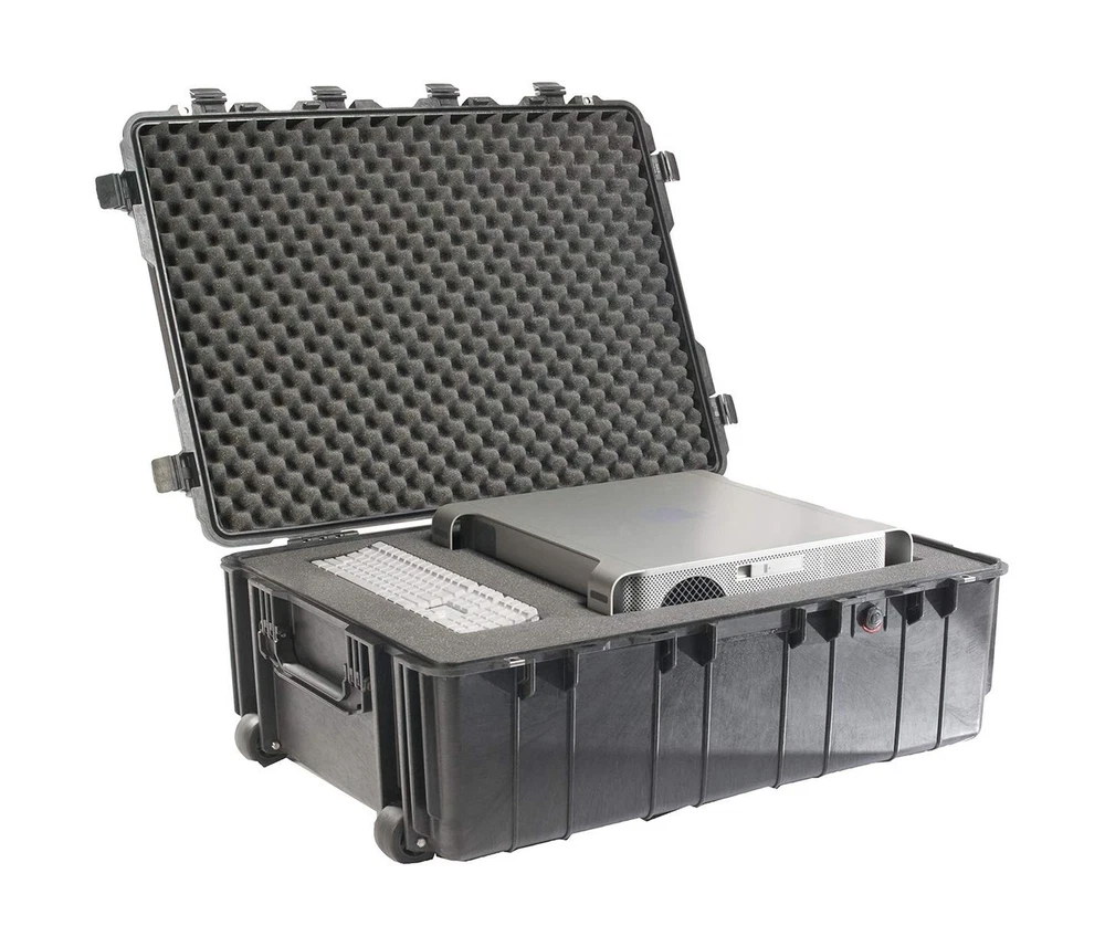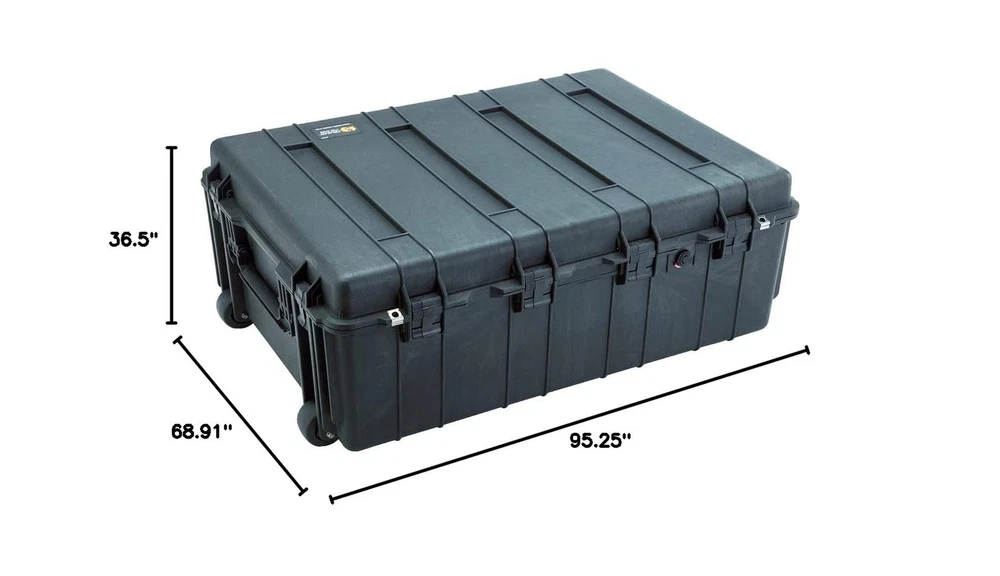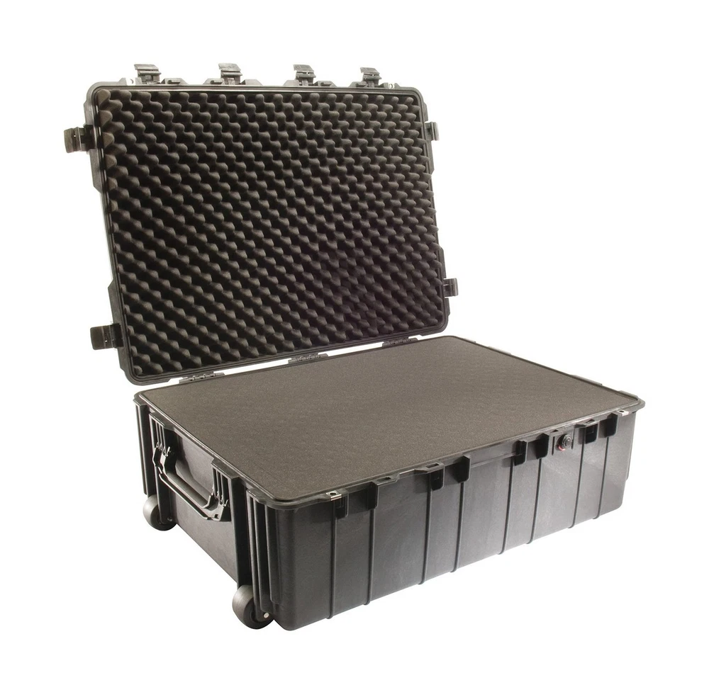 Pelican 1730 Transport Case With Foam (Black) Description The 1730 heavy-duty transport case from Pelican is as heavy duty as they come watertight, crush proof and dust proof, this case is made with an open cell core and solid wall design, so it is extremely strong but also lightweight for its size. The 1730 features an extra-deep stackable design and easy-open double throw latches and can roll on its strong polyurethane wheels with stainless steel bearings. All of this and an O-ring seal, automatic pressure equalization valve and stainless steel Hardware and padlock protectors make the Pelican case the King of the cases. From the Manufacturer From the ManufacturerANATOMY OF A PELICAN CASEUltimate Equipment ProtectionFor over 30 years Pelican has built a reputation for manufacturing the toughest cases in the world. As a matter of fact, we invented the category. Over these years we've seen our cases used for some fairly crazy activities...and important ones too.Pelican Cases have been thrown out of helicopters in Iraq, floated through frigid fjords in Norway and rolled over by SUVs in Tanzania. With only a few scratches to show on the outside, contents inside are left unscathed. These are minor details for major bragging rights. And that is really what it's all about. Getting your gear from point A to point B in the condition it's meant to be in: intact and functional. Because it might contain a large format camera that will shoot next month's magazine cover or a heart defibrillator that could save a person's life, you can't put a price on it. Stronger by Design Pelican Cases are made with a proprietary combination of homo co-polymers, using an open cell core and solid wall construction, which is stronger and lighter than a solid core wall. Stainless steel pins are used in hinges and handles. WatertightThe secret is the tongue and groove fit with a polymer o-ring acting as a waterproof seal.Cool Under PressureAutomatic Pressure Equalization Valve releases built-up air pressure while keeping water molecules out, resulting in a watertight case that is even easier to open.Easy RollerStainless steel ball bearing wheels last longer and ride smoother. The nylon hub adjacent to the stainless steel is made to resist heat. The result is less wear and tear on the polyurethane wheel. Double-Throw LatchesStainless steel hasp protectors are a Pelican exclusive. The Double-Throw latches are smarter and easier to open: it's the classic "C" clamp design with a secondary movement that works like a pry bar to start the release and offers plenty of leverage to open with a light pull.NameplateCustom engraved nameplates are available for a nominal fee.Reinforced Padlock ProtectorsStainless steel reinforced padlock protectors provide added strength and extra security against cutting and theft. Features: Watertight, crushproof & dustproof. BODY: Polypropylene.BODY: Proprietary Polypropylene Blend Interior (L X W X D)34.00 x 24.00 x 12.50 inches (86.4 x 61 x 31.8 cm,Exterior (L X W X D) 37.50 x 27.13 x 14.37 inches (95.3 x 68.9 x 36.5 cm) .Extra-deep stackable case Easy-open double-throw latches. Latch Material - ABS Open cell core with solid wall design Strong & lightweight Product Details: Shell Type: Hard Material Type: Blend Item Weight: 43 Pounds Item Dimensions L x W x H: 27.13"L x 14.37"W x 37.5"H Manufacturer: Pelican Products Inc. Global Trade Identification Number: 31 Brand Name: Pelican UPC: 631058196119 080050290521 757274993698 777786226558 019428071431 617407283433 012303531006 611102354184 080000383952 642892821006 079531842779 014444591697 Style: Travel Pattern: Solid Color: Black Wheel Type: In line skate Handle Type: Carrying Handle Number of Compartments: 2 Strap Type: Stretchable Closure Type: Hasp Capacity: 5.9 Cubic Feet Delivery We Do Not Ship Outside of the Continental US. Return Policy All items qualify for returns within 30 days of receipt. Buyer is responsible for return shipping on any item that is not damaged. Feedback We take our reputation seriously, we buy and sell online, so we understand the value of trust. If you are unsatisfied with your order, please contact us and we will work with you to resolve it to your satisfaction.