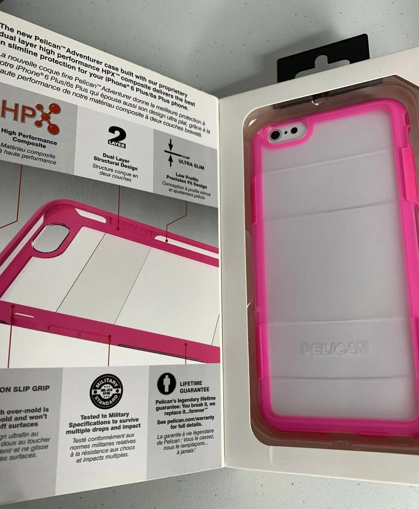 Design/Finish:TransparentItems Included:Hard CaseMPN:n/aWireless Charging Standard:MagneticColor:ClearCompatible Brand:For AppleFeatures:Dual Layer Structural Design, Military Grade Drop Protection, HIgh Performance CompositeMaterial:Rigid PlasticCompatible Model:For Apple iPhone 6 Plus, For Apple iPhone 6s PlusBrand:PelicanCharacter:n/aType:Fitted Case/Skin