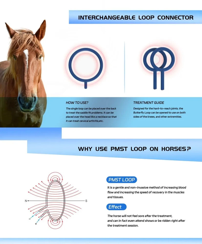 Store Categories Store Categories Cryo Slimming EMslim Slimming Laser Beauty Equipment Lipo Laser 808nm Diode Laser IPL Elight OPT ND YAG Laser Picosecond Laser CO2 Laser DPL 980nm Vascular Removal Hifu Machine 4D Hifu 7D Hifu 9D Hifu Shock Wave Therapy Physio Magneto Tecar Therapy Homeuse Instrument Ultrasonic Skin Scrubber Radio Frequency High Frequency LED Mask Skin Tester Face Massager Dermabrasion Hydar Dermabrasion Diamond Dermabrasion Cavitation Other Equine PEMF Therapy Horses Massage Machine PMST LOOP Magnetic Physiotherapy Product Description Equine PEMF Device PMST LOOP Magnetic Therapy Machine for Horses Treatment WHAT IS PMST LOOP ? PMST LOOP commonly known as PEMF, is energy medicine. Human bodies are alive because of electromagnetic exchanges between cells. PEMF therapy introduces a low frequency pulsed electro-magnetic field (PEMF) that recharges the cells of the body, allowing them to float freely, increasing their effective functioning surface area and consequently enhancing circulation, oxygenation and hydration. At the same time cellular ability to absorb nutrients and remove toxins from the body is greatly increased How Does PEMF Work on Horses? High powered PEMF devices for horses generate results at an accelerated rate and can be easily adjusted for optimal level of penetration. PEMF promotes cellular exercise, which increases circulation, blood oxygenation, and helps the body recovery naturally, while reducing inflammation, and, relieving pain. Using MagnaWave sends a pulsating charge through tissues to provide energy to large focal areas like joints and major muscle groups. Penetration of the charge can be up to 16 inches into the equine body. Twitching muscles help to identify imbalances, pain or sore muscles that need to be further worked on with MagnaWave. By pinpointing the problem areas, the practitioner is able to work at the source of pain rather than just manage its symptoms. The PMST LOOP box is an excellent way to help hoof issues. PMST LOOP for horses is safe to use and require no sedation. How Can PMST LOOP Help for Your Horse? PMST LOOP is used in nearly every competitive equestrian discipline for equine performance enhancement, health maintenance, and recovery. Owners and trainers can generally see and feel an improvement in the way the horse moves after several PEMF sessions. PMST LOOP for horses is a safe and effective, drug free alternative to keep your horse in optimal health. Promote Relaxation and Stress Reduction Pain Management Improve Circulation Accelerate Recovery Reduce Inflammation and Soreness Support Joint and Muscle Health Enhance Performance Support Hoof Health Muscle Relaxation Improve GI Complications Using PMST LOOP for Race Horses PMST LOOP aids a horse in the post workout routine by assisting in recovery and reducing the soreness associated with muscle strain and lactic acid build up. PEMF helps a horse to train at its best, compete to its fullest, and bounce back from injury or work as quickly as possible. Regular use of PEMF relaxes the horse, reduces aches and pains, and improves general wellness Seller:SHBEAUTY Location: Shenzhen Business Name:SHBEAUTY A Disclaimer That States: The sale of this item may be subject to regulation by the U.S. Food and Drug Administration and state and local regulatory agencies. If so, do not bid on this item unless you are an authorized purchaser. If the item is subject to FDA regulation, I will verify your status as an authorized purchaser of this item before shipping of the item Buyer note: International Buyers – Please Note: - Import duties, taxes and charges are not included in the item price or shipping charges. These charges are the buyer responsibility. - Please check with your country customs office to determine what these additional costs will be prior to bidding/buying. Most countries will not charge any customs duties, but sometimes some countries will charge you less money for customs duties. it is uncontrollable with us. So we don't pay this fees. if you have any problems please contact us. Payment Policy Shipping Policy Returns Policy Warranty Feedback Payment Policy Payment: 1. We accept payment via PayPal only and only ship to Paypal CONFIRMED address (NO PO BOX). 2. Please note that all payment should be completed within 7 days after auction/buy now end. 3. Please make sure you understand our Payment method and Shipping policies before purchase. Shipping Policy Shipping: Shipping on regular working days (will not ship on weekends or public holidays ) starts within 48hrs after your payment is credited and cleared to our PAYPAL account. And in some cases we shall ship via