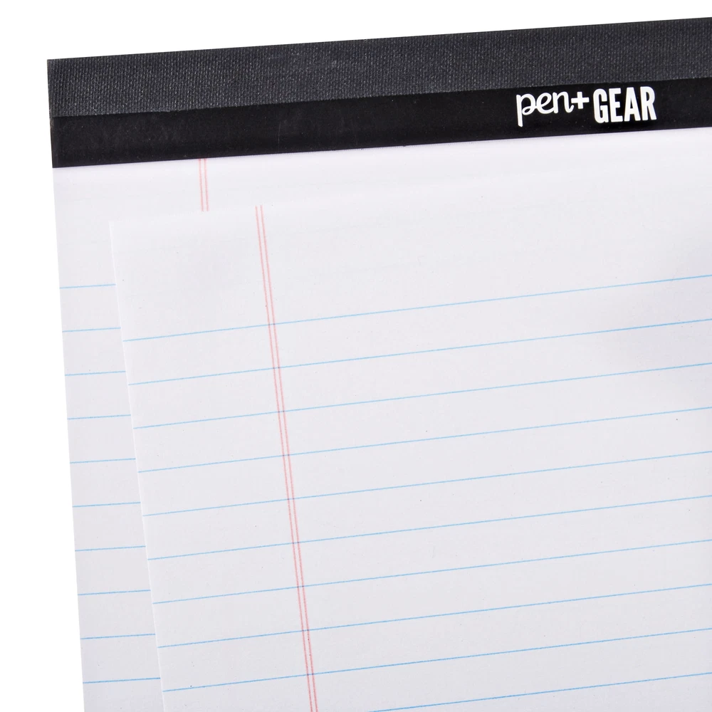 Take care of all your writing needs with this 12 pack of Pen+Gear legal pads. These white, lined, wide ruled legal pads are classic stationery items which can be used by people in any profession or for amateur hobbyists. From authors, legal assistants, doctors, and teachers to college students and hobbyists, these legal pads are sure to provide you with the dependable service you expect. The microperforated design of the 50-sheet pads enable you to fold finished pieces of paper over the top, keeping the pad as a whole or to remove each sheet easily at your leisure. Keep all your notes, ideas, doodles and records in one. Pen + Gear Legal Pad, White, 8.5 x 11.75", 50 Sheets, Pack of 12: 12 legal pads 8.5 in x 11.75 in White 50 sheets per pad, 600 sheets total Keep all your notes, ideas, doodles and records in one place Great for school, home and office use Wide Ruled Microperforated
