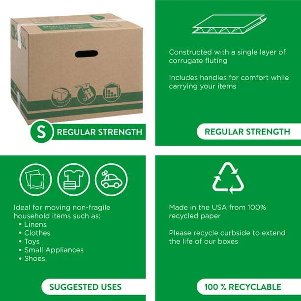 Perfect for organizing and moving! These small recycled boxes are sturdy, eco-friendly, and just the right size for books, clothes, and small items. The set of 25 makes packing a breeze, and I love that they’re made from recycled materials—great for both storage and the planet. Highly recommend!