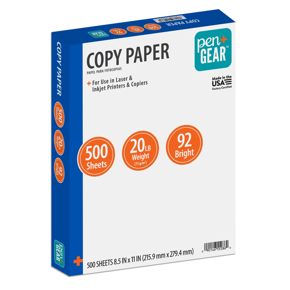 Get creative with Copy Paper, great for home, office, or school. This easy-to-use printer paper lets you make your designs in rich black and color ink. The pack has 500 sheets that work with laser and inkjet printers and copiers, giving you great prints. It's perfect for printing handouts, making signs, or even starting a craft project. This white paper can be used for many things. Be sure to check out other products such as pens, markers, desk organizers, file folders, highlighters, sticky notes, and more for all your school and office supply needs. Choose Copy Paper today and make your next project a success! Copy Paper, 8.5" x 11", 20 lb, White, 500 Sheets Perfect choice for use at home, office, or school Works with laser and inkjet printers and copiers 500 20 lb sheets in 92 bright white Pair with other products