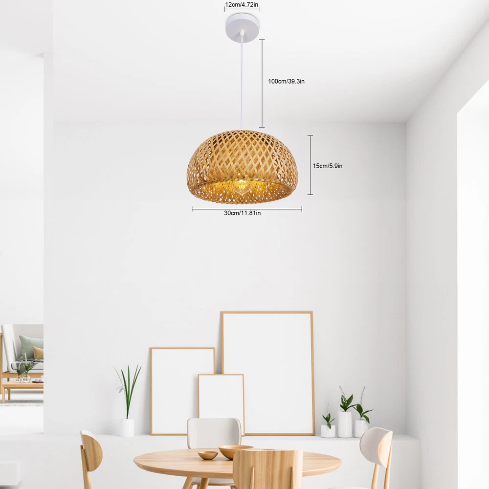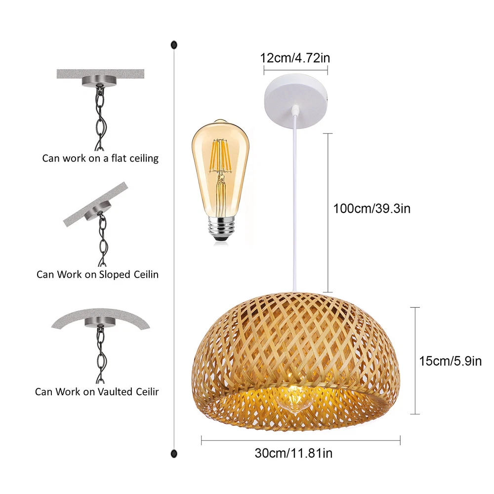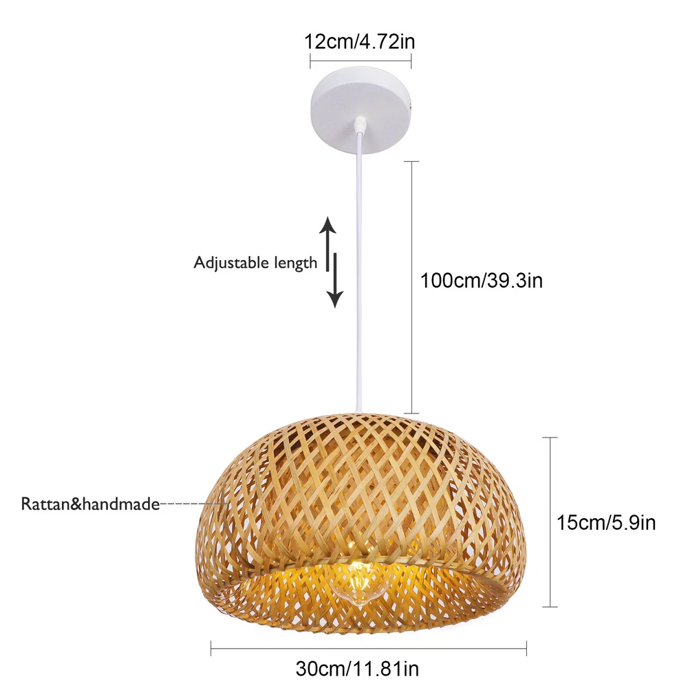 Details E26 Lamp Holder: The standard E26 lamp holder can be compatible with incandescent lamps, energy-saving lamps, LED lamps, halogen lamps, and other lamp types. Robust Base: The enlarged base(4.72in ) provides solid support for ceiling installation. Application It is suitable for residential and commercial applications such as cafes, restaurants, bars, offices, living rooms, bedrooms, corridors, entrances, libraries, clubs and kitchens to provide lighting and decorative functions with an illuminated area of about 32-53ft². Pendant Light Vintage Bamboo Wicker Rattan Shade Hanging Ceiling Lamp Fixture US Description The natural and antique bamboo chandelier has an excellent light transmission and can also project elegant and unique patterns to create an amazing lighting environment. Its simple yet stylish design ensures that it suits a wide range of interior styles and décor, making it an ideal choice for you to decorate your home or give to friends and relatives! Key Features High-quality Material: The natural bamboo and wood have excellent aging resistance, abrasion resistance and corrosion resistance , and are very healthy, providing a long service life. Good Decorative Effect: The hollow double-hemisphere appearance design highlights the comfortable and quiet pastoral style. It provides elegant decoration for any space and leaves a deep impression on guests. Custom Dimming : When used with dimmable bulbs and compatible dimming switches(not included), it can apply a dimming function. Soft &Warm Lighting: The hand-woven lampshade softens the light and protects your eyes from direct exposure. The light casts light shadows on the ceiling and surrounding walls through the hollow part, creating a comfortable and relaxed atmosphere. Easy to Install and Replace: Its simple structure and complete installation accessories allow you to complete the installation easily. Also, the open bottom facilitates the replacement of bulbs. Easy to Clean: It is dead space free for easy cleaning. All you need to do is sweep it gently with a chicken feather duster to remove the dust from it. Adjustable Chain: The light's chain length(39.3in) is adjustable to accommodate both high and low ceilings for better lighting and decorative effect. Customer Service: We aim to provide quality products and services. If you have any problems, please feel free to contact us. We will reply and solve the problem for you as soon as possible. Details E26 Lamp Holder: The standard E26 lamp holder can be compatible with incandescent lamps, energy-saving lamps, LED lamps, halogen lamps, and other lamp types. Robust Base : The enlarged base(4.72in ) provides solid support for ceiling installation. Application It is suitable for residential and commercial applications such as cafes, restaurants, bars, offices, living rooms, bedrooms, corridors, entrances, libraries, clubs and kitchens to provide lighting and decorative functions with an illuminated area of about 32-53ft². Notes 1. Before installation and cleaning, make sure that the power supply has been cut off. Before replacing the light bulb, please cut off the electricity supply and allow the bulb to cool. 2. Please use the lamp within the applicable voltage range and clean lamps regularly. 3. Please note that the bulb is not included in the package, you need to prepare an E26 bulb yourself. 4. Please do not be surprised by the original color of the bamboo pendant light when you receive it. Fresh bamboo material might look a little greenish at first, and it will become closer to beige wood color over time. 5. Please note that the lamp itself does not have a dimming function. 6. Please allow the slight color difference caused by the shooting light and 1-3cm error due to manual measurement, and make sure you do not mind before you order. Payment Delivery details Terms of sales About us Contact us Payment We accept ebay payment 。 Fees such as import duties, taxes are not included in the item price or shipping costs. These charges are the buyer's responsibility. Delivery details Shipping: 2-9 working days to: USA Terms of sales We maintain high standards of excellence and strive for hundred percent customer satisfaction. Feedback is very important to us. We hope that you contact us immediately before you give neutral or negative feedback, so that we can address your concerns. It is impossible to address issues if we do not know about them! About us Your satis faction is our ultimate goal. We work hard to earn your trust and future business. Our certified technicians have tested each item before shipping. The unit comes with 1 year limited warranty on all manufacturing defects. a) If you receive a defective item, you may return it or ask for a discount. Please contact us within 14 days after you receive the package. b) What you returned must be intact and in its original packaging as re? u. Customer is responsible for shipping costs of the returned item. c) We will cover the cost of shipping back t with the shipping rate indicated in the registration page. We will send you a new unit or refund the full payment you paid. Thank you. Contact us Business Hour Business Hour: Monday To Friday: 8:30 AM to 5:00 PM (Beijing China time) Due to time zones, our reply to your questions may not be immediately. But within above working time, we will reply your email within 24 hours. If it's non-workdays, please kindly be patient and wait till Monday. Please contact us with ebay message. Please feel free to contact us if you have any questions. Monday To Friday: 8:30 AM to 5:00 PM (Beijing China time) Due to time zones, our reply to your questions may not be immediately. But within above working time, we will reply your email within 24 hours. If it's non-workdays, please kindly be patient and wait till Monday. Please contact us with ebay message. Please feel free to contact us if you have any questions. Brand Unbranded Type Pendant Sensor Type / Style Antique Lighting Technology E26 Room Be