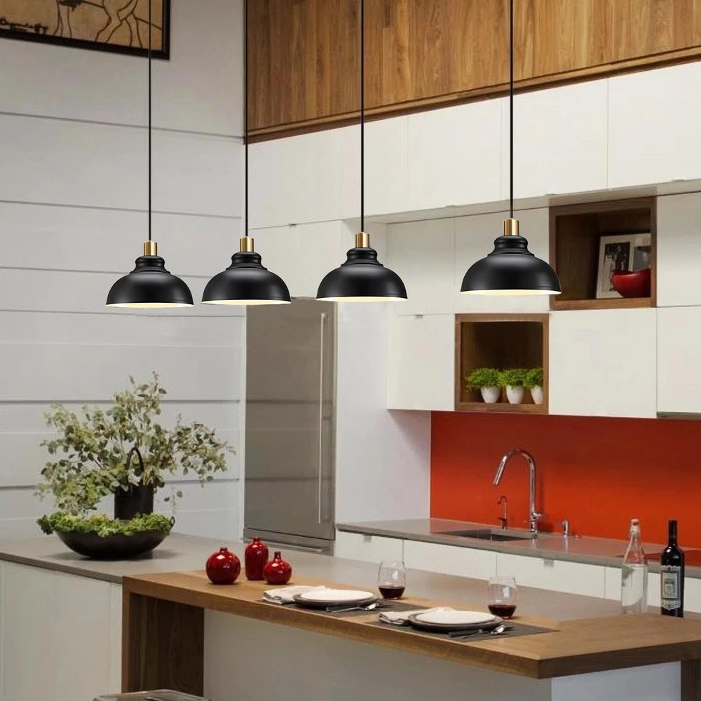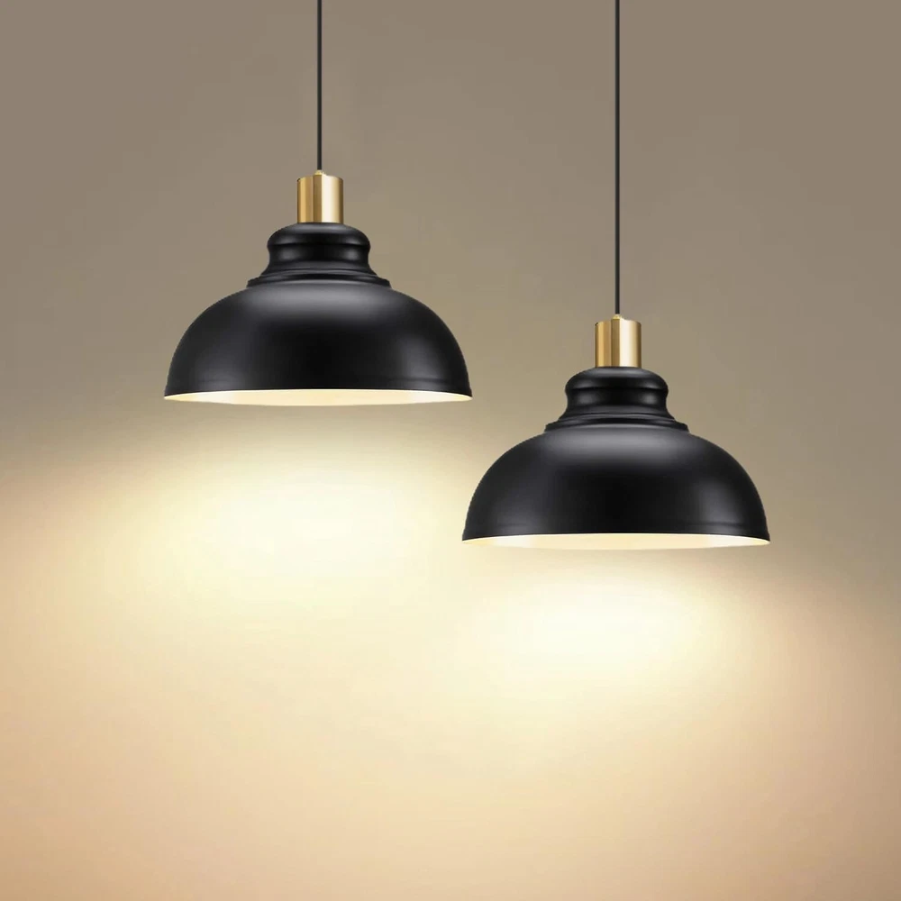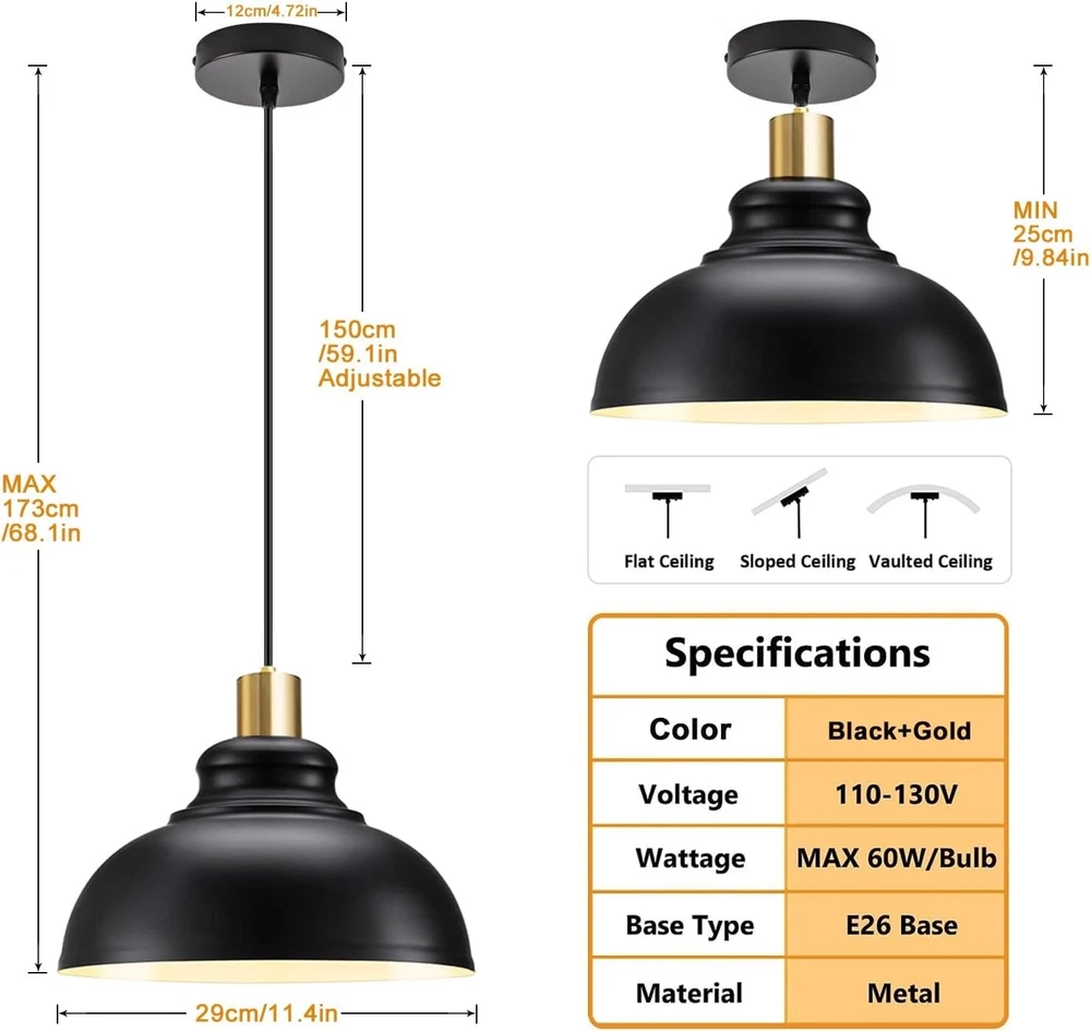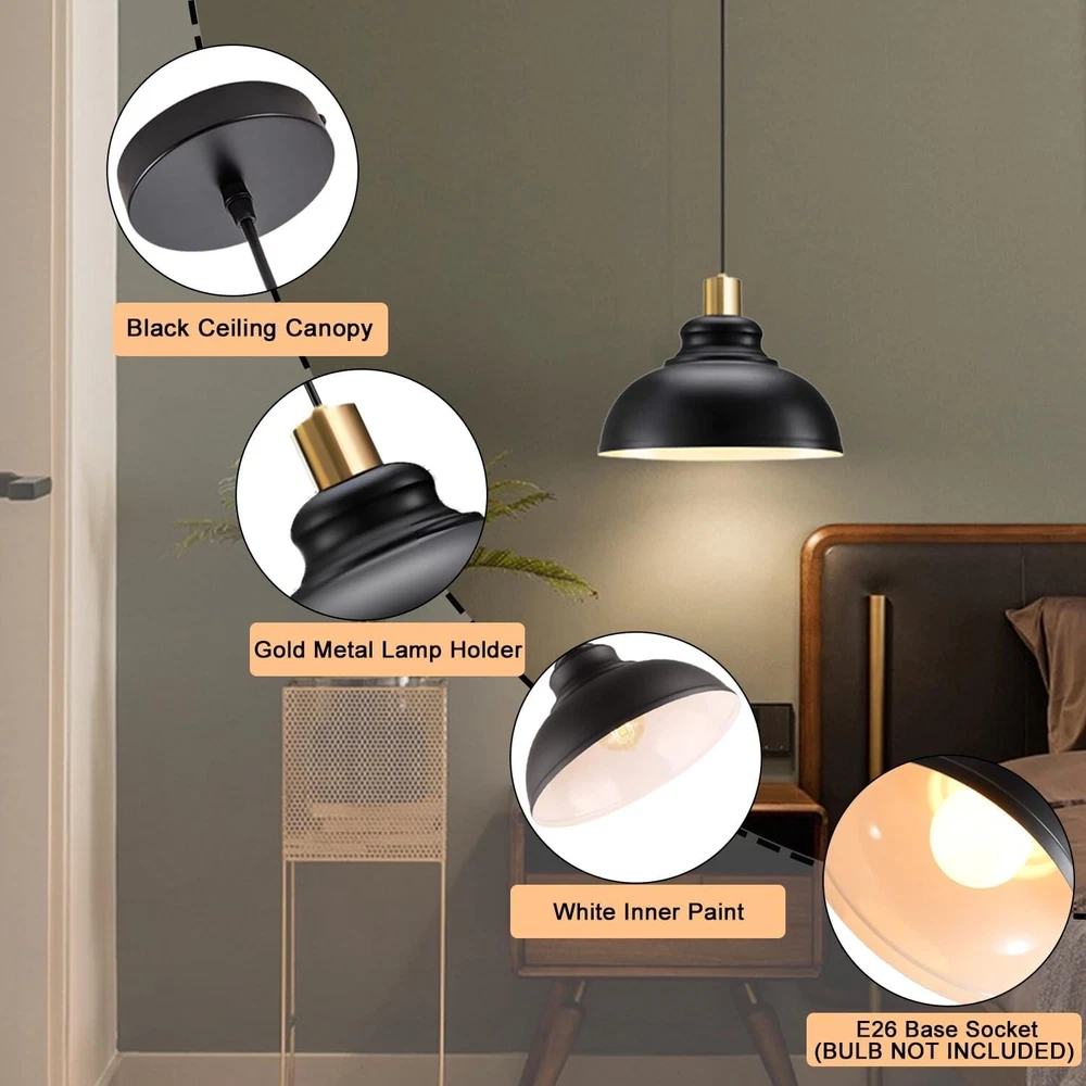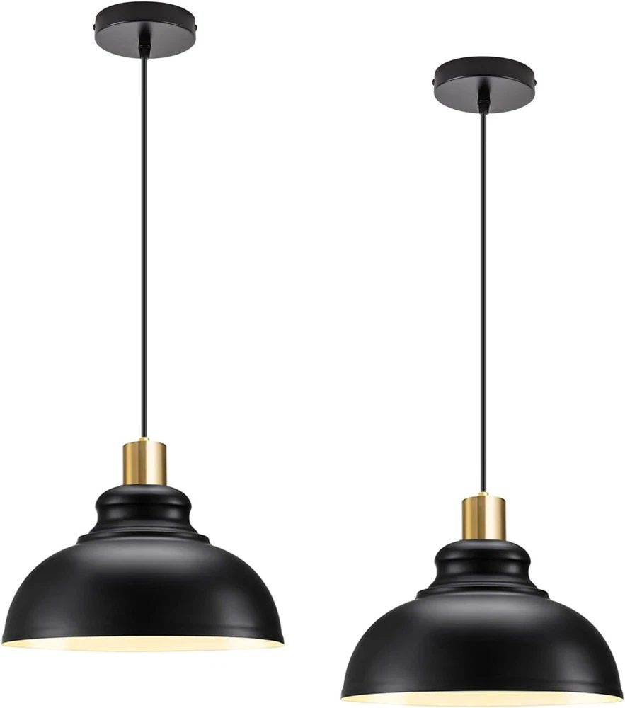 - Brand New - Never Used - Questions: Feel free to ask any Questions - BOX: Never Opened - DESCRIPTION: • 【Black&Gold Classic Design】 Vintage farmhouse pendant light with black finish on the outer layer and white inner layer. Make the light more diffuse and soft. This simple pendant light is perfect for kitchen island, front doors, warehouse, hallway, dining room, workbenche, stairwell, dining room and more. * 【Adjustable Cord& Ideal Dimension】This black pendant light with a length of about 59.2 in adjustable wire, you can freely adjust its height according to your needs. Lampshade: 11 .4"L x 11 .4"W x 9"H. * 【Easy to Install】The industrial pendant light fixtures comes with all mounting hardware, installation instructions for quick and easy installation, it can be widely installed on sloping/pitched or ceilings. * 【E26 Base】The farmhouse chandelier with heat resistant UL standard E26 base Compatible with E26 bulbs (60W max). You can choose from different bulb categories: LED, CFL, Incandescent, Halogen, etc. (Bulb not included). - OFFERS: Reasonable offers are considered, LOWBALLERS, Best price and Lowest askers will be ignored - all sales final/no refunds/ no exchanges/ no returns - Disclaimer: I do not own the brand's trademarks, logos, pictures, or products posted. I do not intend to infringe on copyright. I find such content available on the internet. Contents are considered fair use. -Farmhouse Pendant Lights Kitchen Island, Adjustable Metal Pendant Lighting Vintage Black Pendant Lighting for Kitchen Island Restaurant Dining Room Sink, E26 Base, 2 Pack