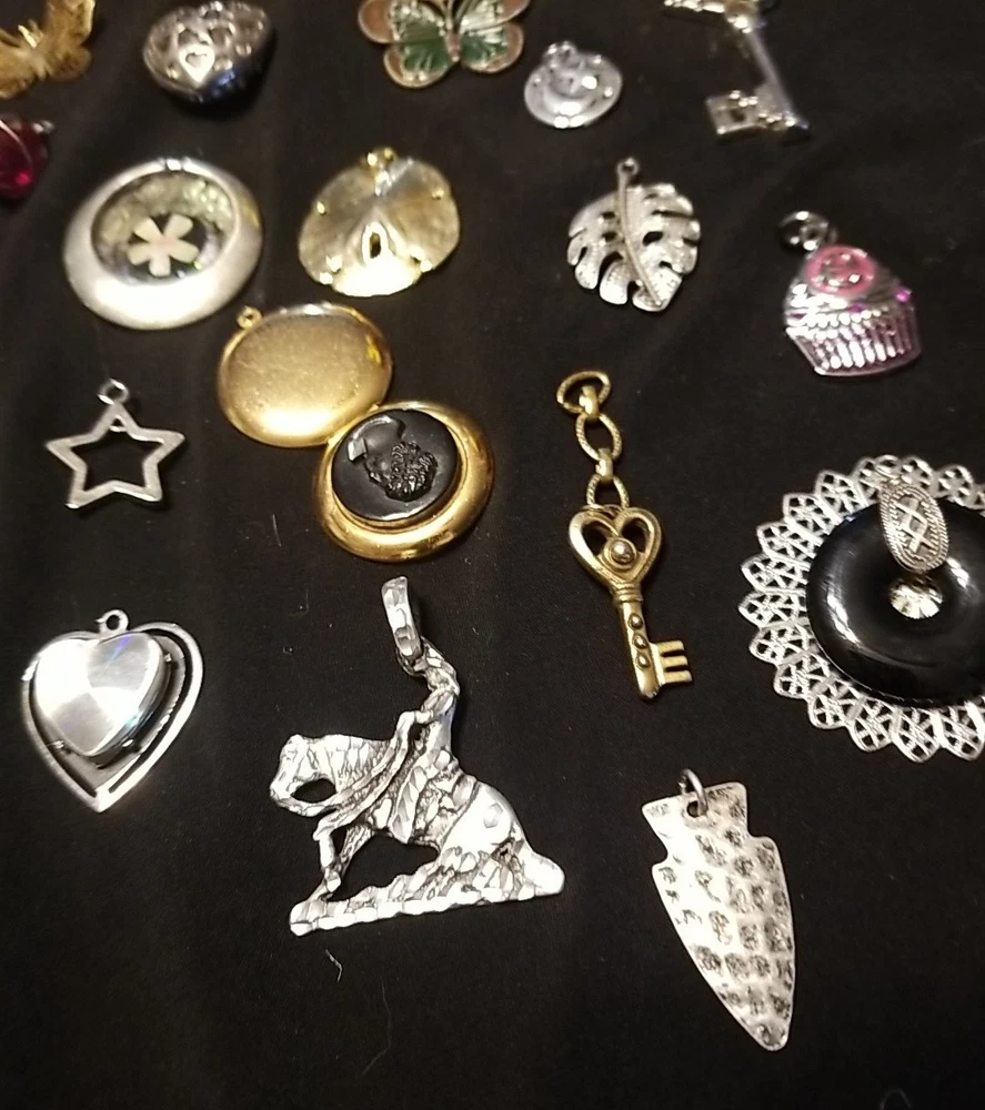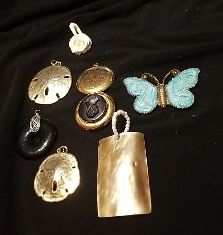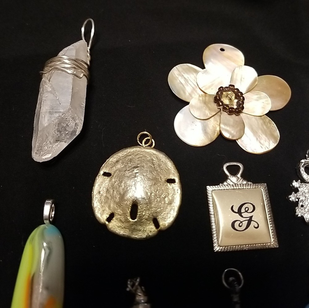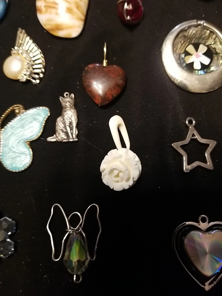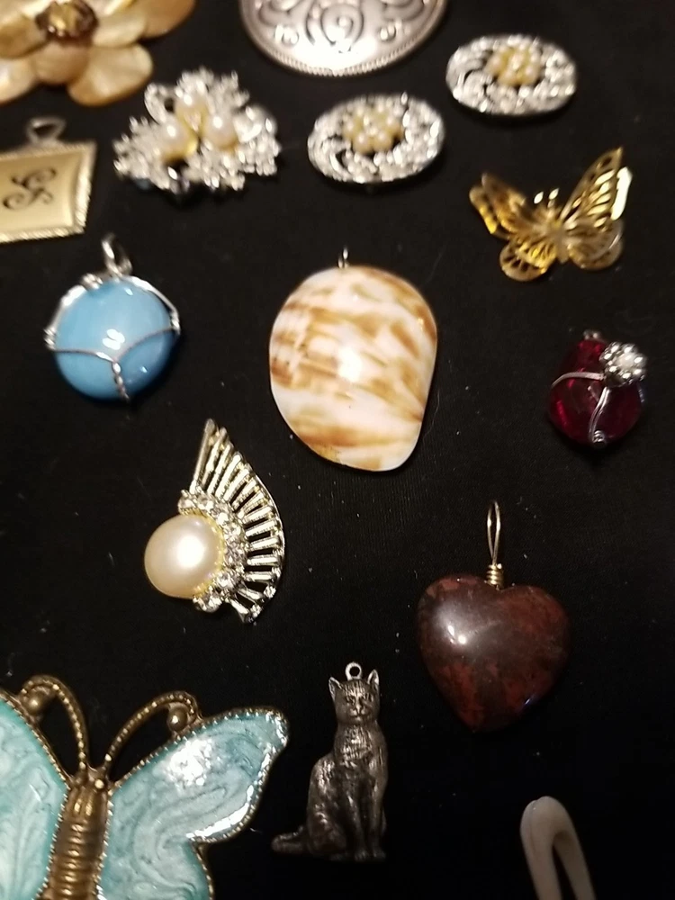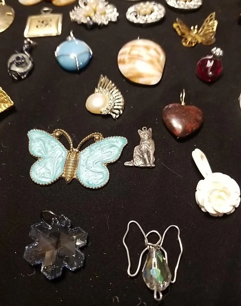 This product is a set of 43 multicolored charms and pendants, suitable for jewelry making or collecting. The charms are made from various metals and types of materials, offering a diverse selection for creative projects. These charms are non-handmade and ready to be used in crafting and design endeavors. let me know if you are buying multiple items i will combine shipping to save you money.