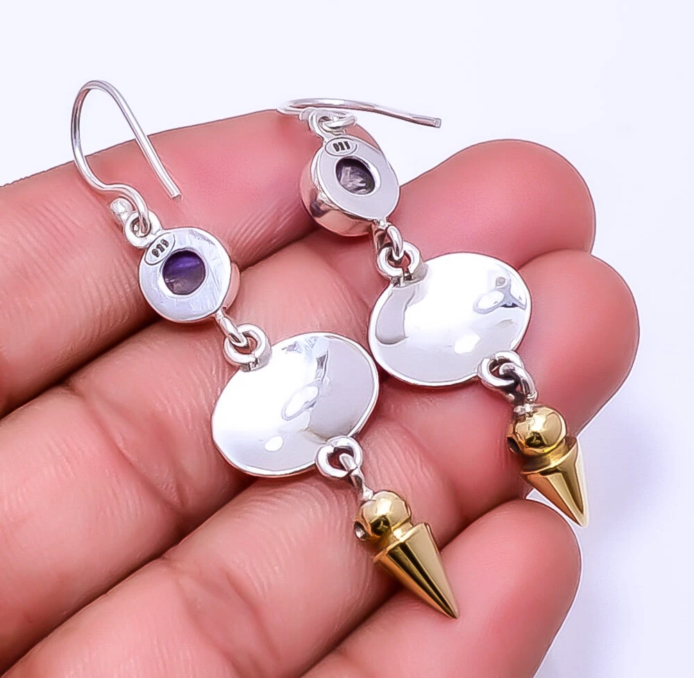 Theme Beauty Main Stone Depth As Seen in Picture Main Stone Length As Seen in Picture Main Stone Width As Seen in Picture Seller Warranty Yes Shape As Seen in Picture SKU E_9321_102_36 Main Stone Cut Type Cabochon Main Stone Size 8X8 Mm Antique Yes Handmade Yes Type Earring Style Drop/Dangle Metal Sterling Silver Metal Purity 925 Parts Per 1000 Base Metal Sterling Silver Total Carat Weight 39 Main Stone Bertrandite Main Stone Creation Natural Main Stone Shape Round Main Stone Color Purple Main Stone Treatment Natural Material Gemstone, Stone Number of Gemstones 2 Item Length 2.34 Features Engraved, Nickel-Free, Handcrafted Ear Area Lobe Brand Unbranded Country/Region of Manufacture India Country of Origin United States Color As Seen in Picture Diamond Clarity Grade Not Applicable Number of Diamonds As Seen in Picture Item Diameter As Seen in Picture Gemstone Clarity Grade Opaque Diamond Color Grade Not Applicable Customized No Colored Diamond Intensity Not Applicable Certification 100% Genuine Guaranteed Setting Style Bezel Occasion Christmas, Birthday, Anniversary, Engagement, Wedding, Valen Shipping & Handling - Charge - 1st item-5.90 And Additional item-1.90 Handling Time - 1 Days . Delivery Time - 2 TO 3 DAYS. Shipping Service - USPS First Class Package 2 -3 Days. Returns - 1.We offer a 100% Money Back Guarantee minus shipping for 30 days after receiving the Item / item's. 2..The item must not be altered or damaged in any way shape or form. 3.Upon receiving these items your payment will be refunded. 4.Email us for return instructions before sending merchandise back. 5.Please allow up to 1 business day for all returns to receive credit. 6.Sizing does not affect the return policy. Payment - We accept PayPal for Payment ,should made with in 14 days once buying or winning done , in case of late information expected .