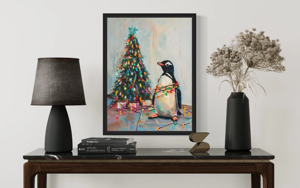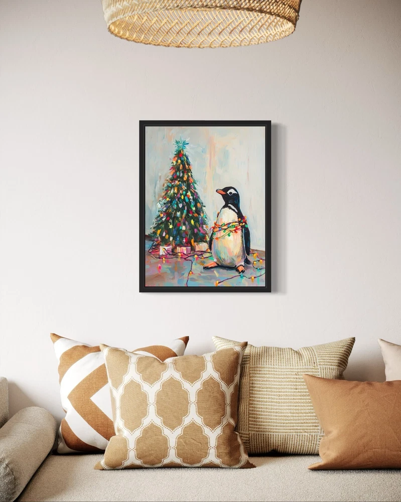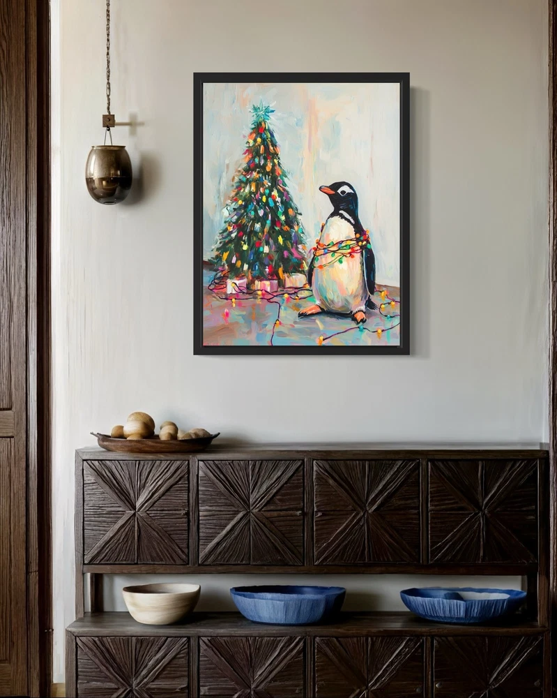 Penguin Christmas Art Print Poster City Wall Art Painting Artwork